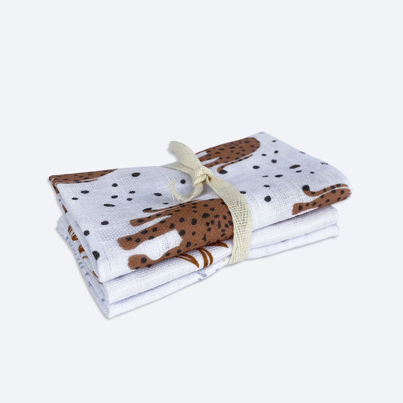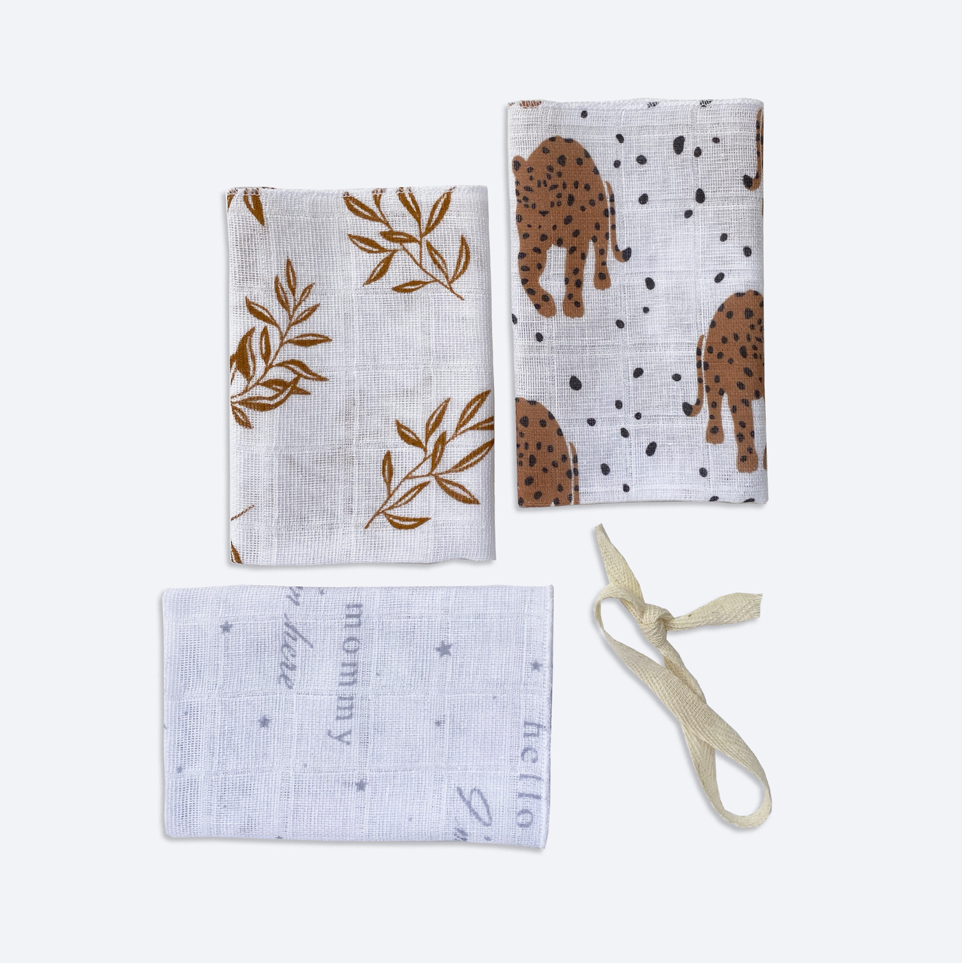 Сет из 3х муслиновых салфеток Mjolk Леопарды/Листья/Hello mommy