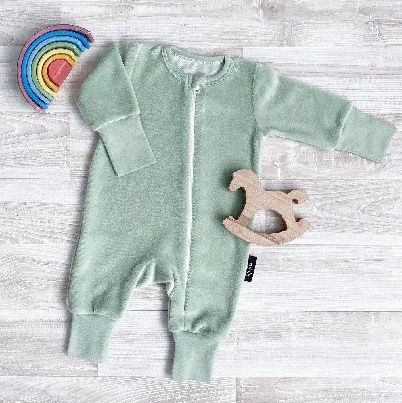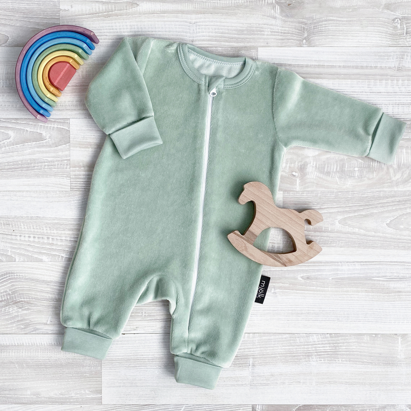 Комбинезон Mjolk Sleep and Play Magic Mint велюровый с открытой ножкой