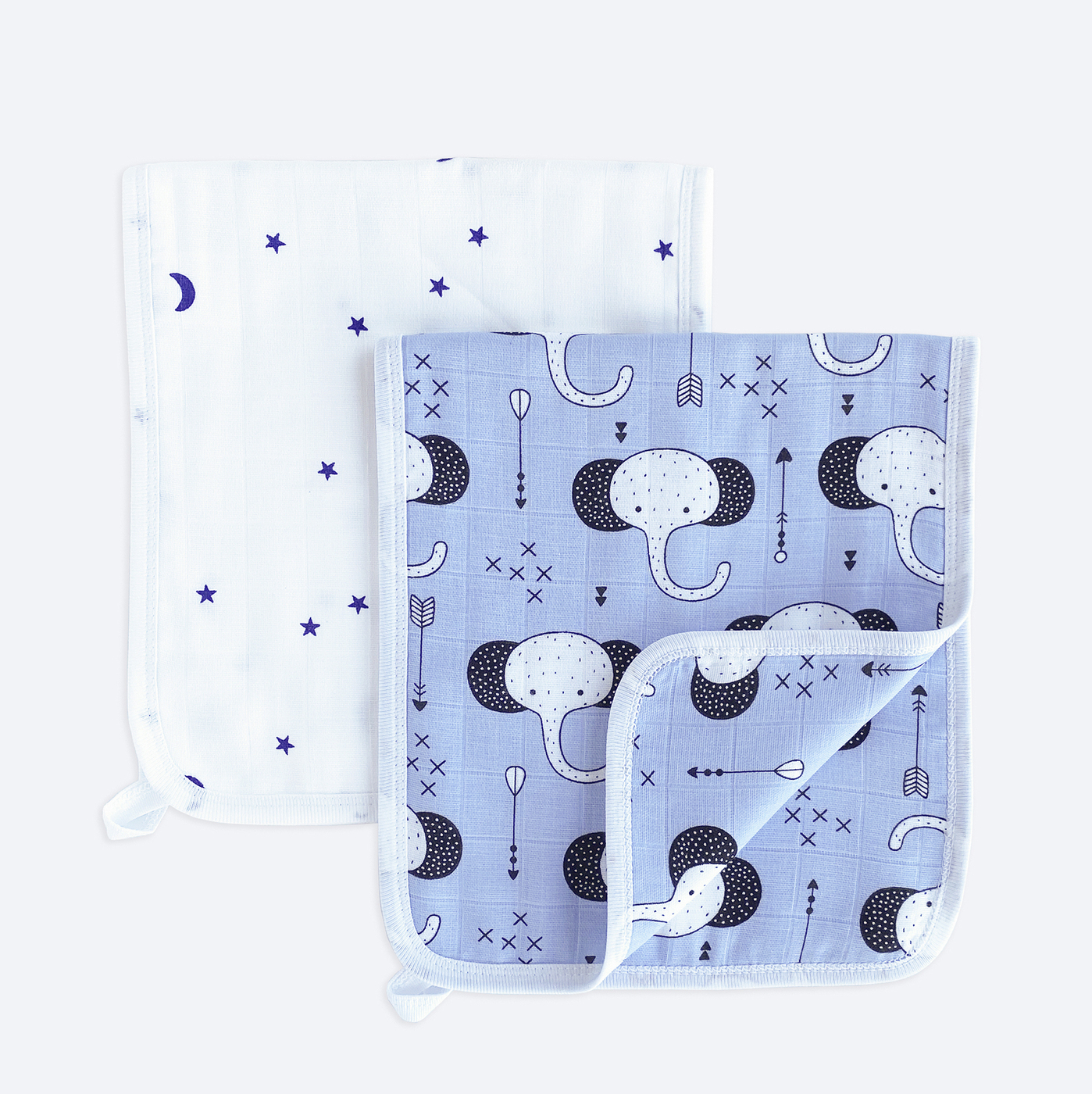 Сет из 2х муслиновых салфеток для кормления Mjolk Слоники/Ночное небо