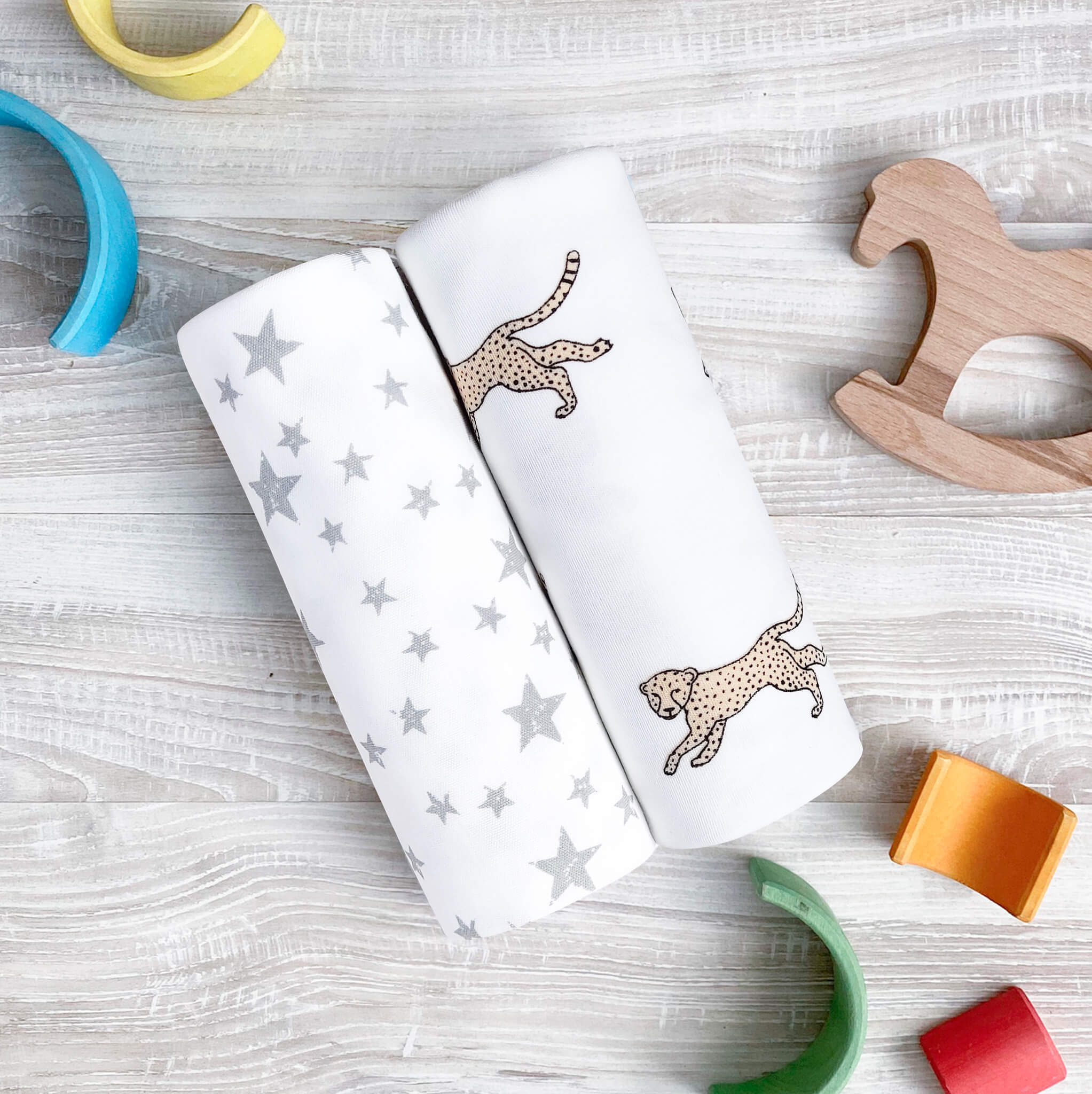 Пеленка текстильная Mjolk 80 х 80 см, Хлопок, 2 шт Гепарды-Звёзды