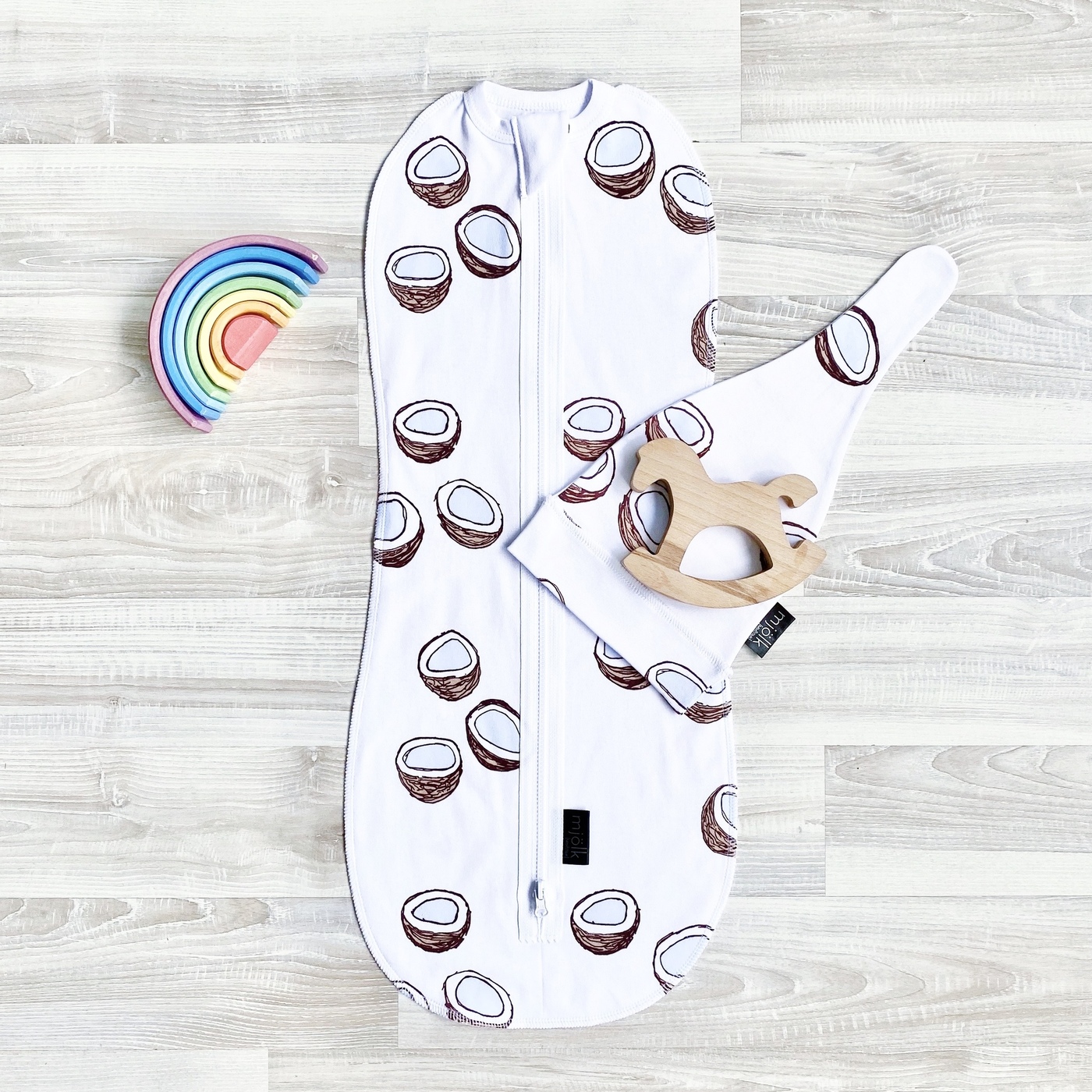 Пеленка-кокон Mjolk Кокосы комплект с шапочкой