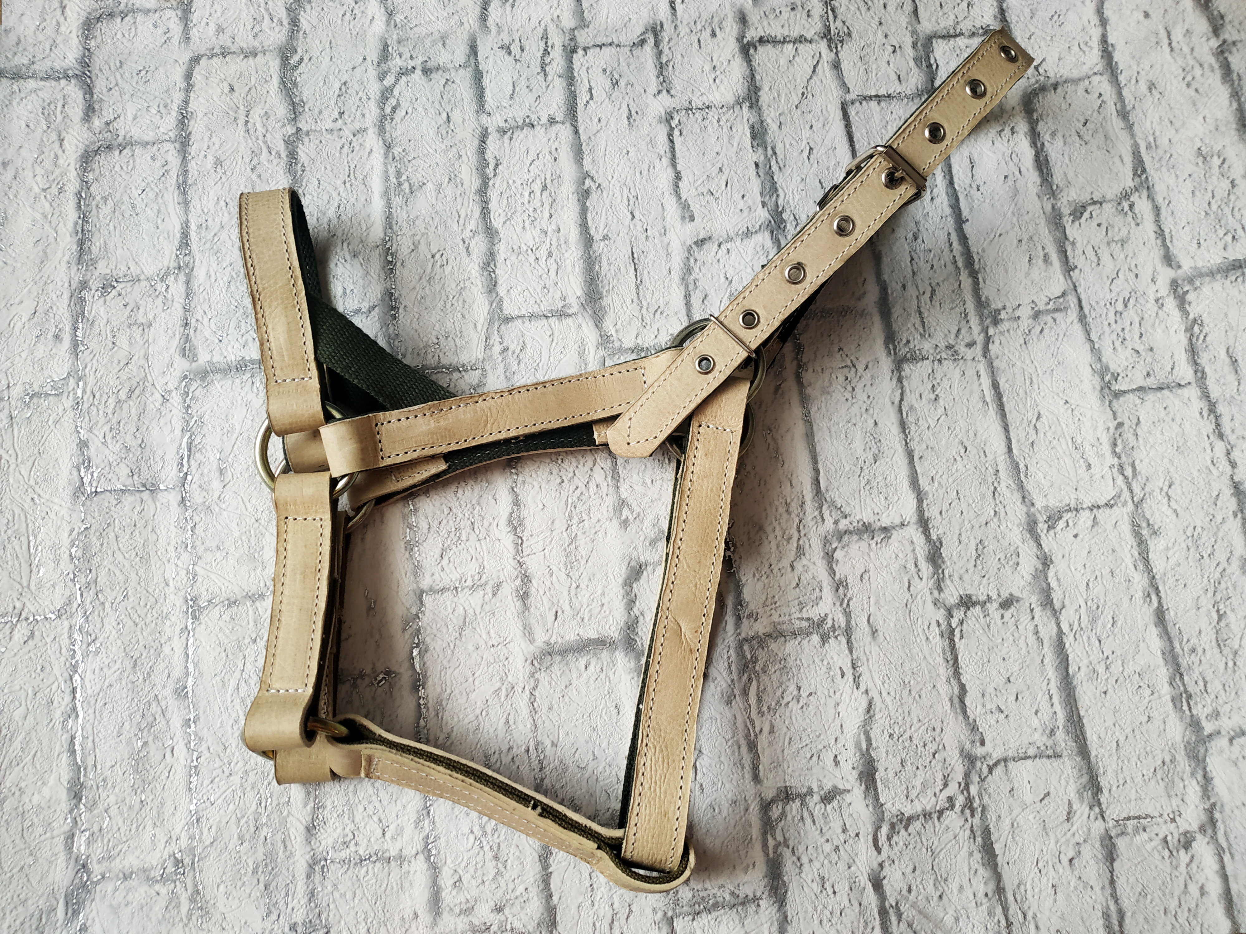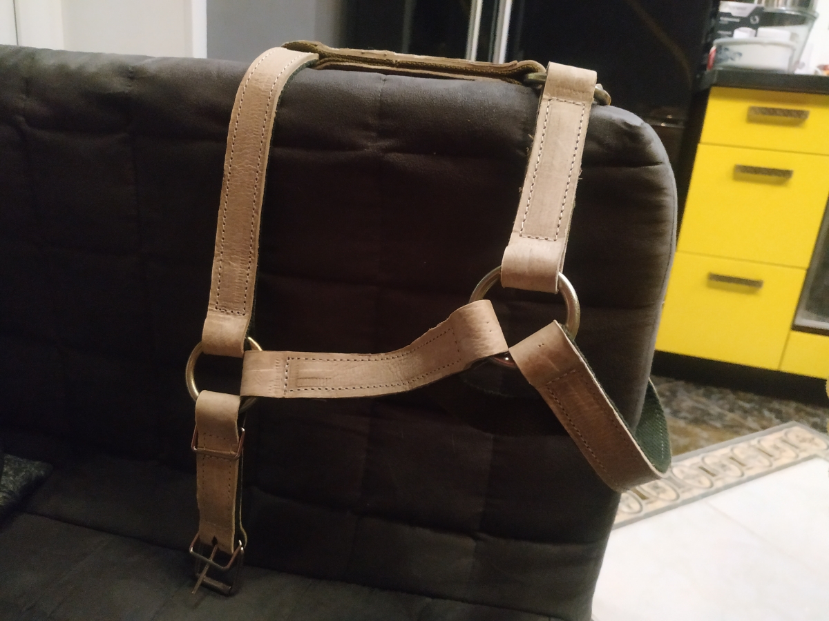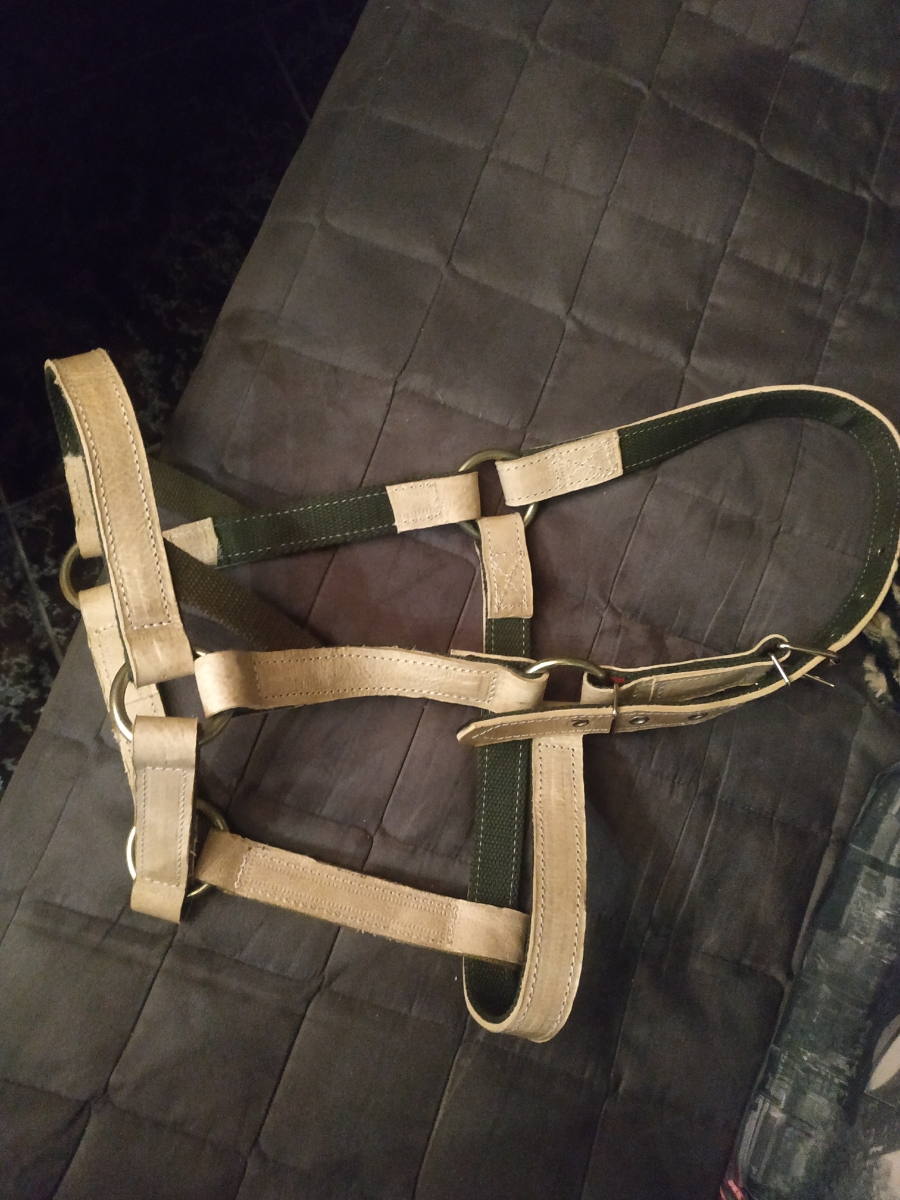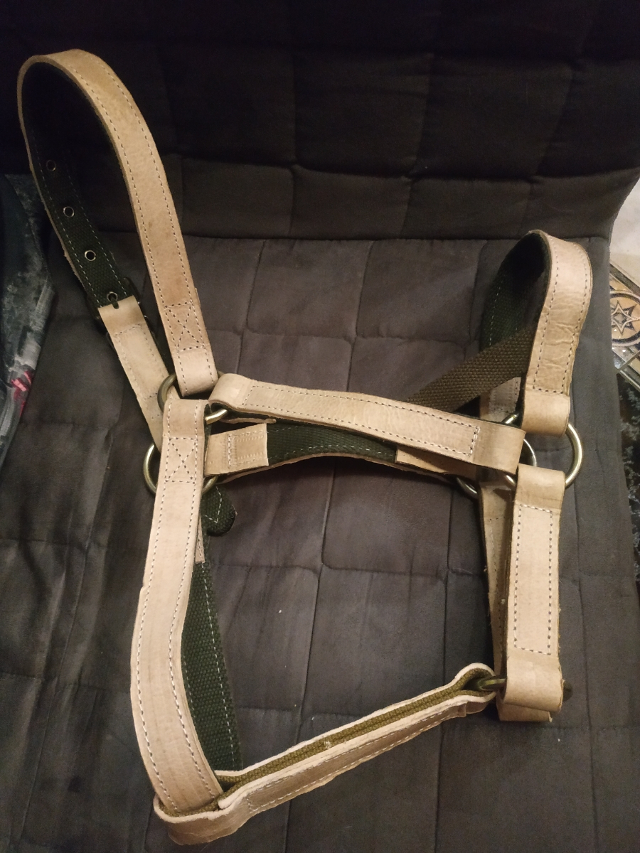 Недоуздок для лошади из сыромяти и ленты №25
