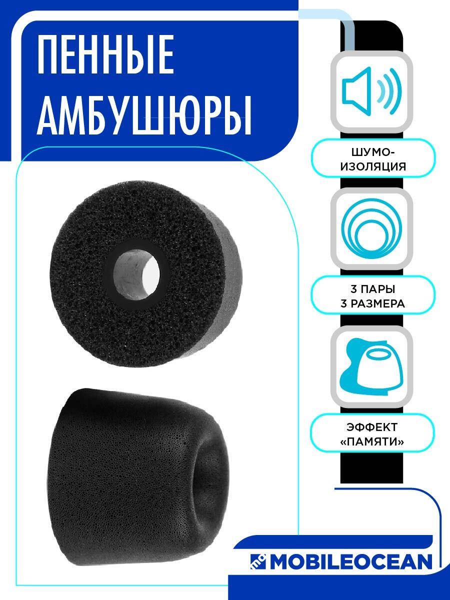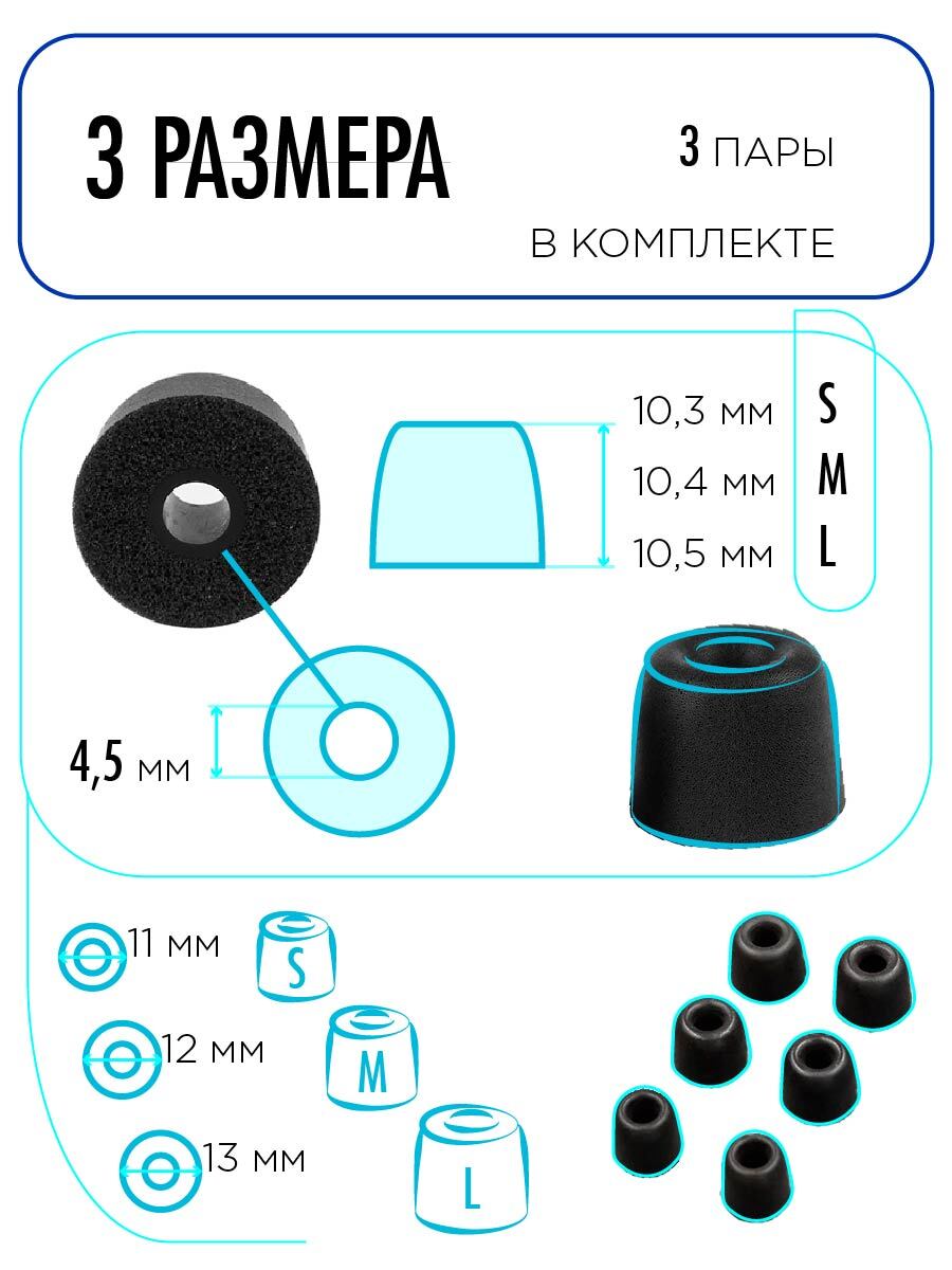 Сменные пенные амбушюры / насадки для наушников (3 пары, размер S, M, L)