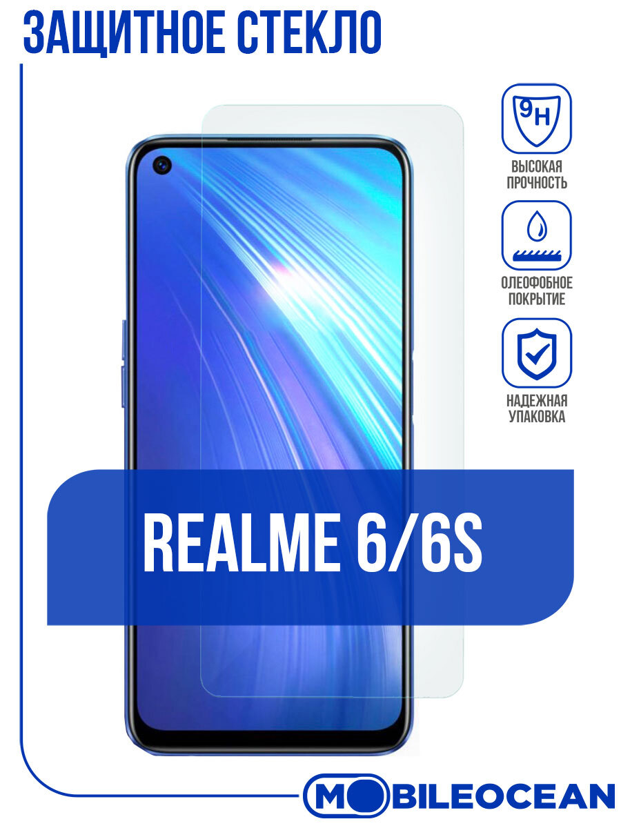 Защитное стекло для Realme 6, Realme 6s (6.5") без рамки, с отступом от краев / Реалми 6