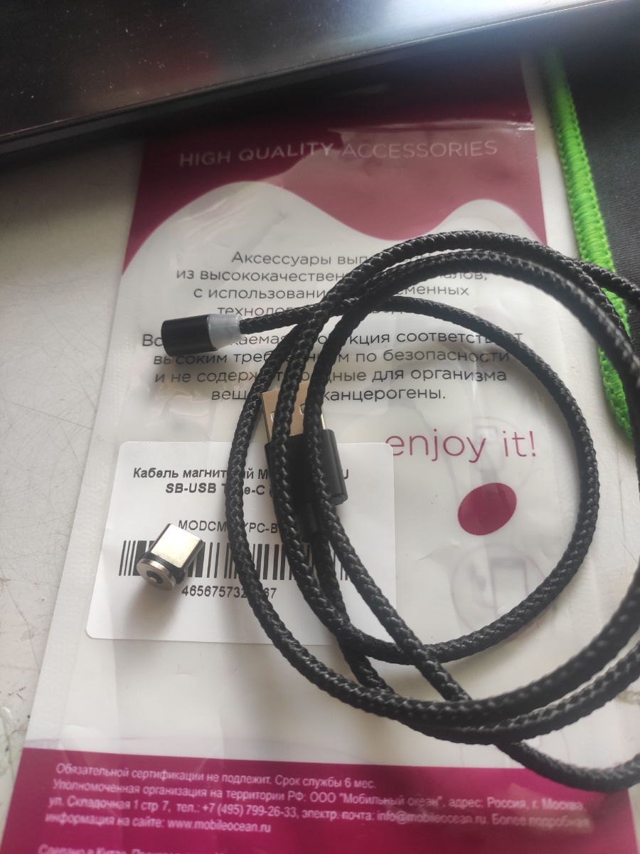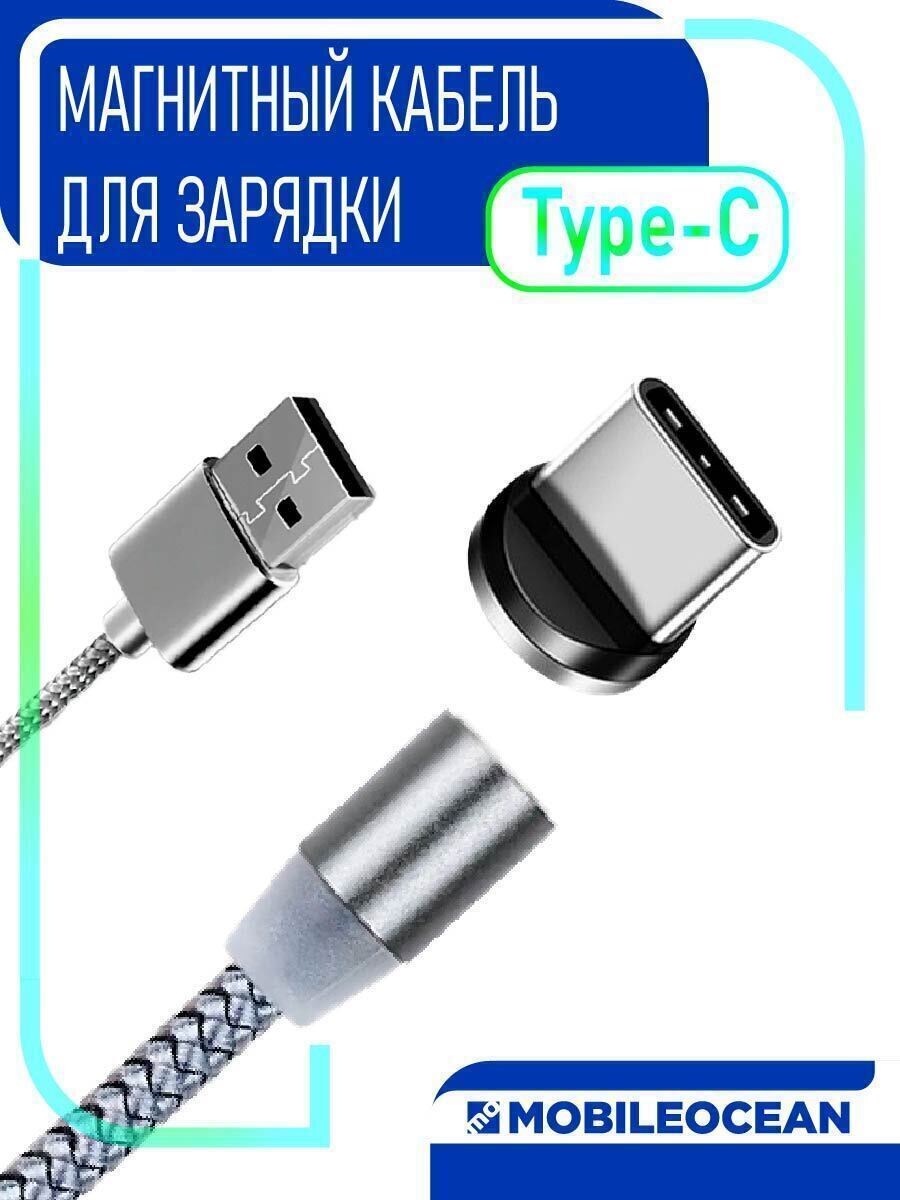 Магнитный кабель USB-USB Type-C, длина 1м, серебристый