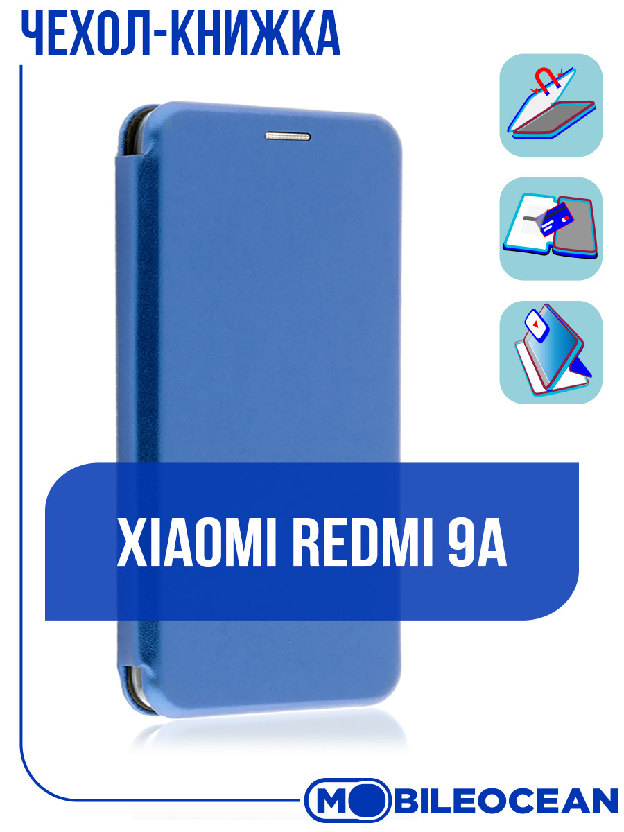 Чехол на Xiaomi Redmi 9A, Сяоми Редми 9A синий защитный, противоударный, книжка с магнитом