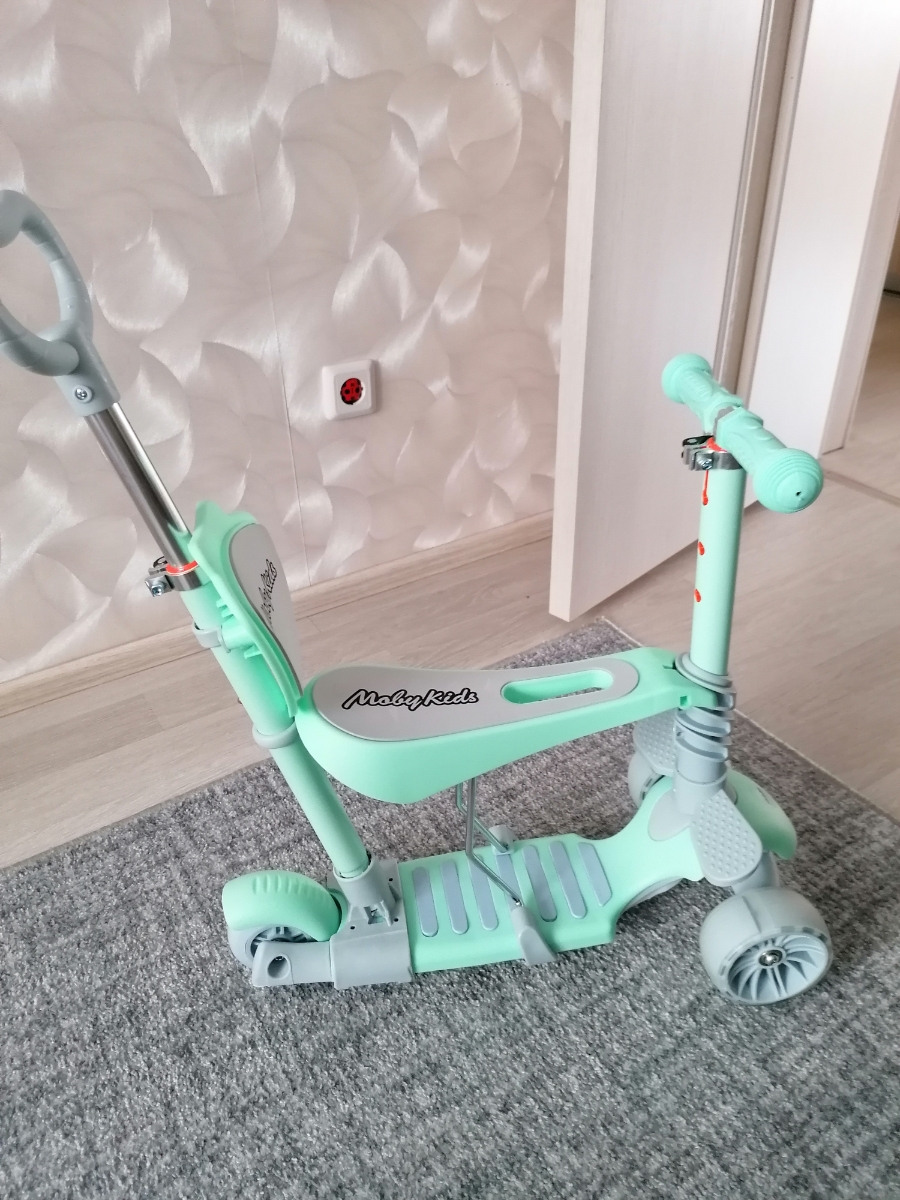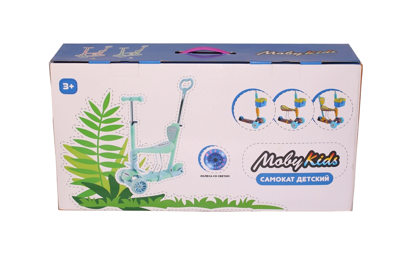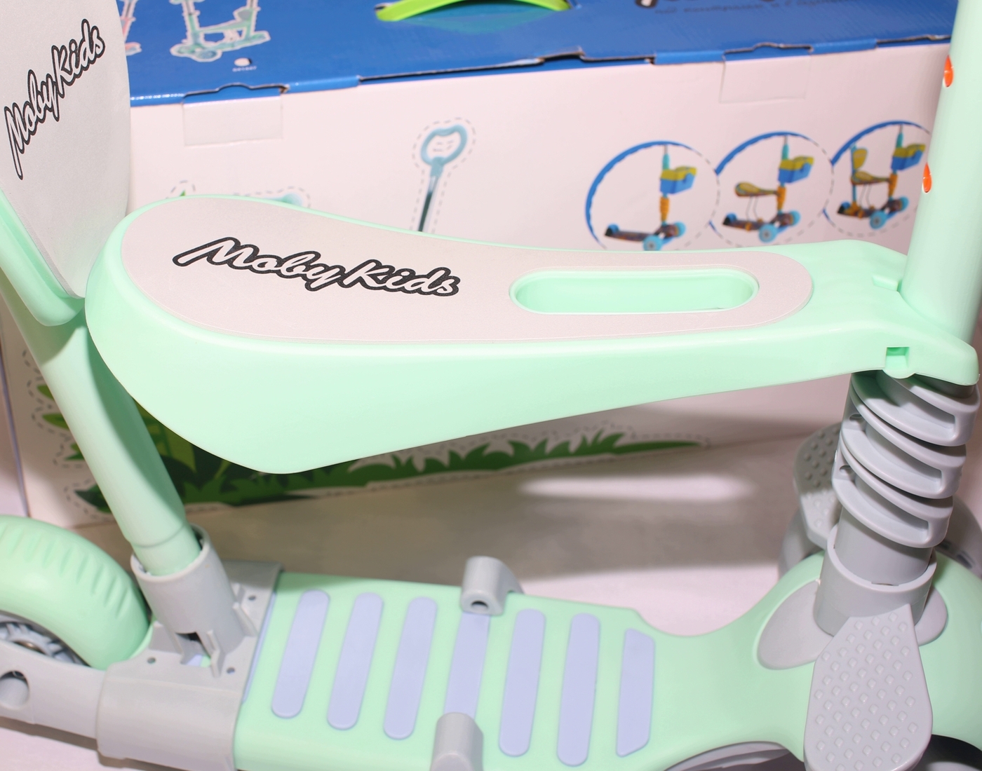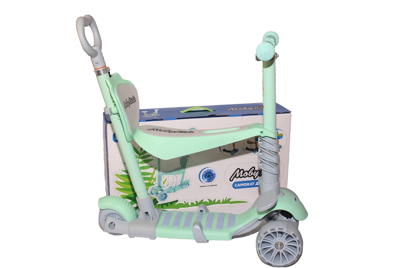 Самокат MOBY KIDS детский трёхколёсный 3 в 1 PONY, сиденье, ручка, светящиеся колёса, мятный, 120 мм
