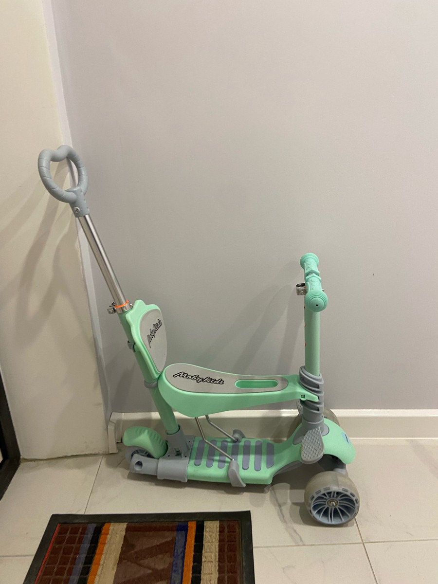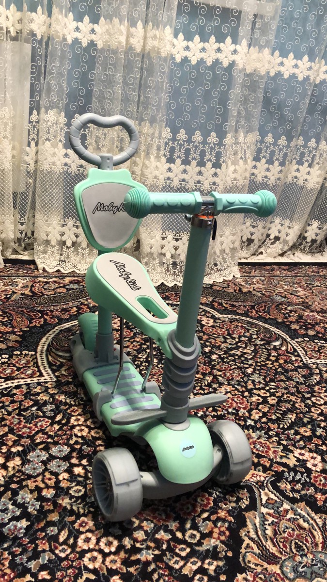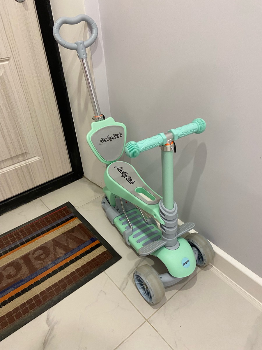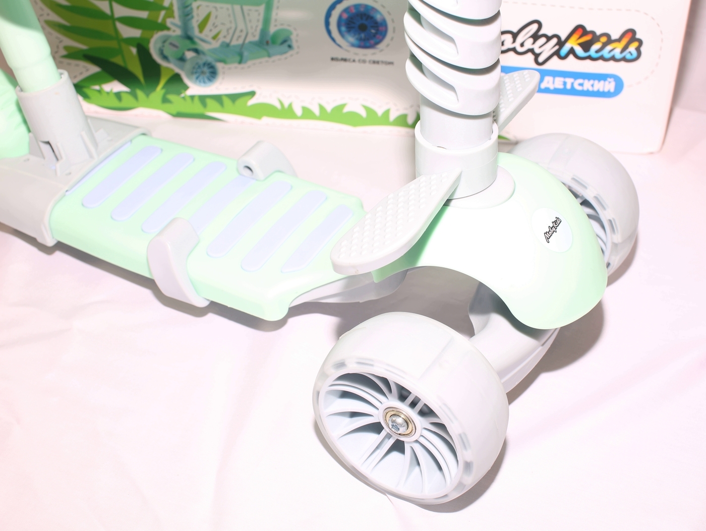 Самокат MOBY KIDS детский трёхколёсный 3 в 1 PONY, сиденье, ручка, светящиеся колёса, мятный, 120 мм