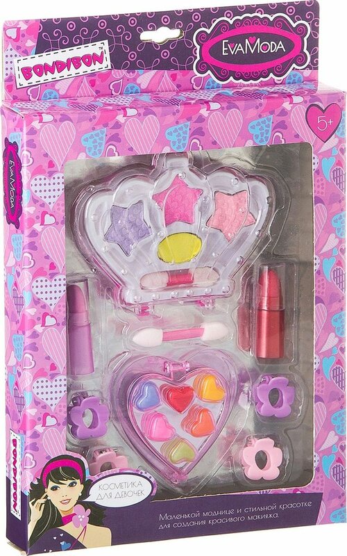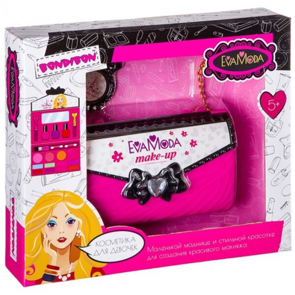 Детская декоративная косметика Bondibon Eva Moda (с двухуровневой косметичкой-ягодкой)