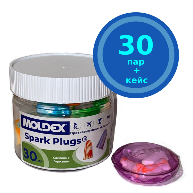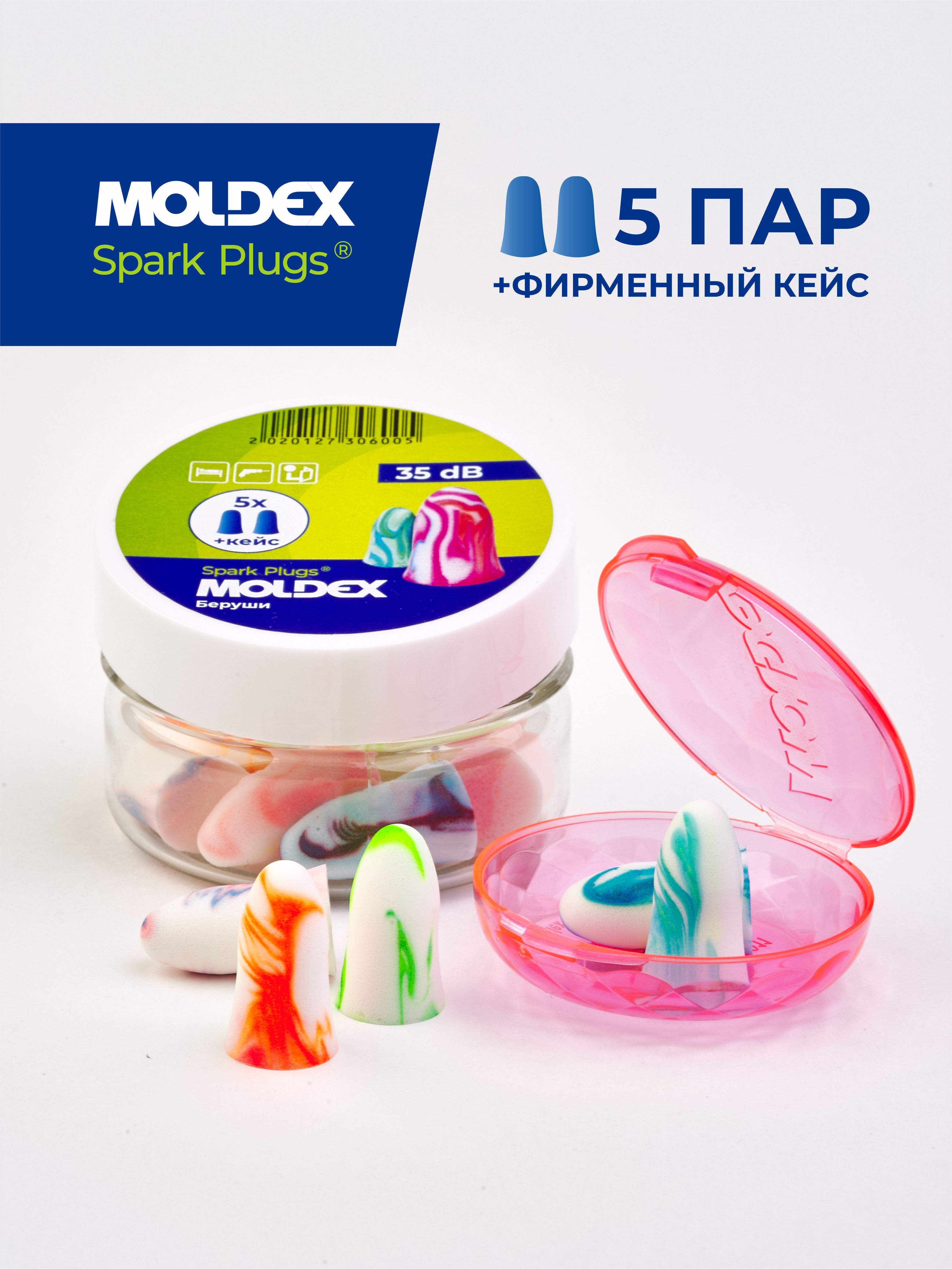 Беруши (10 пар с кейсом для хранения), шумоподавление 35 дБ, Moldex Spark Plugs 7800