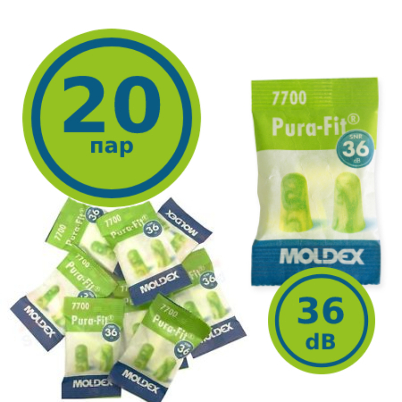 Вкладыши противошумные (беруши) Moldex Pura-Fit 7700 - 20 пар.