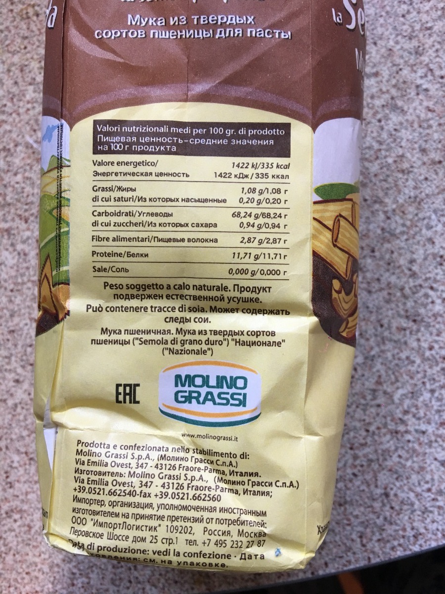 Molino Grassi мука пшеничная из твердых сортов пшеницы, 1 кг