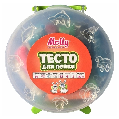 Масса для лепки Molly 12 цветов с 4 формочками и ножом (M2333)