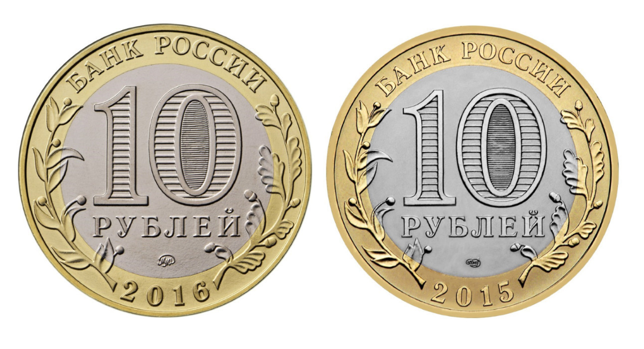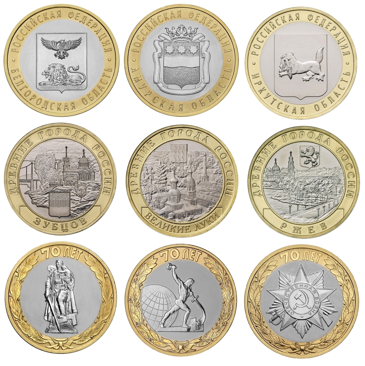 Полный набор биметаллических монет России за период с 2015 по 2016 год (9 штук).