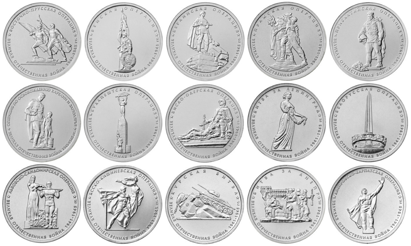 Набор монет номиналом 10 рублей "70 лет Победы в ВОВ" (3 штуки). 2015 год.