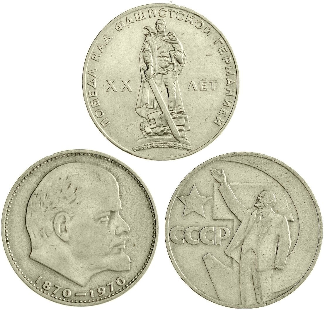Набор монет "Первые юбилейные рубли СССР" (3 штуки). 1965-1970 года.