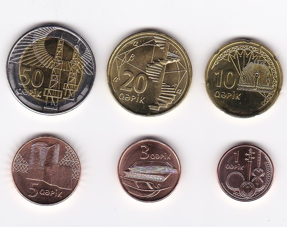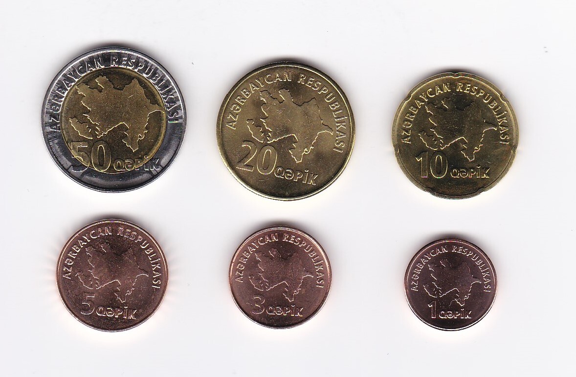 Набор монет номиналом от 1 до 50 гяпиков (6 штук). Азербайджан. 2006 год.