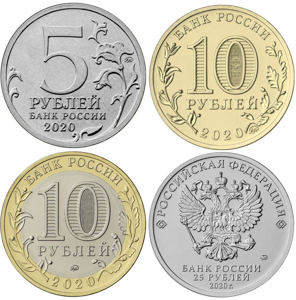 Полный набор биметаллических монет России 10 рублей 2020 год (4 штуки).