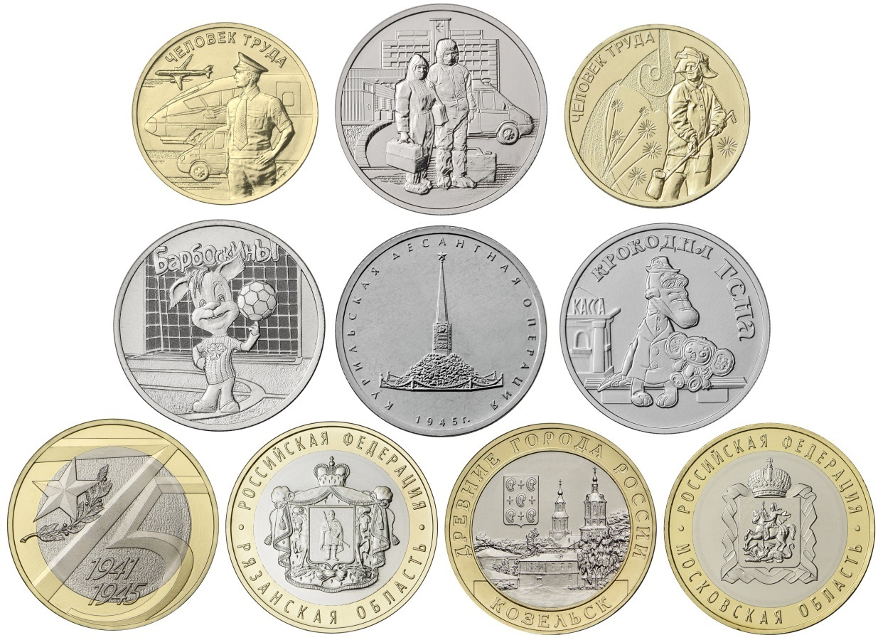 Набор юбилейных монет Российской Федерации 2020 года (10 штук).
