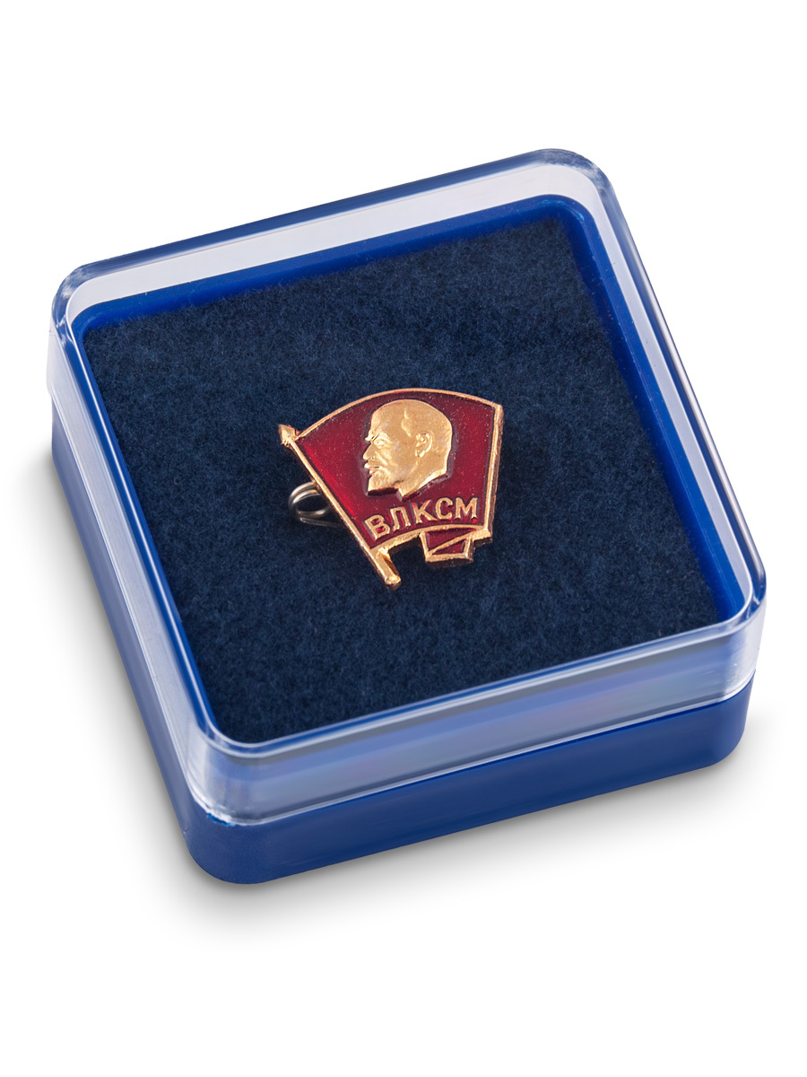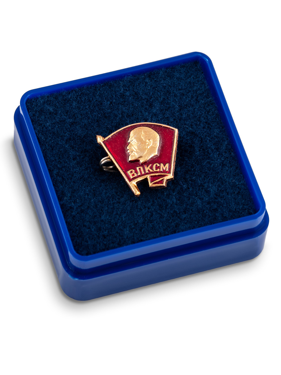 Значок "ВЛКСМ" в футляре и подарочном мешочке. СССР.
