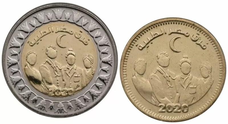 Набор монет 1фунт+ 50 пиастров "Медики " Пандемия, COVID(2 штуки). Египет. 2021 год.
