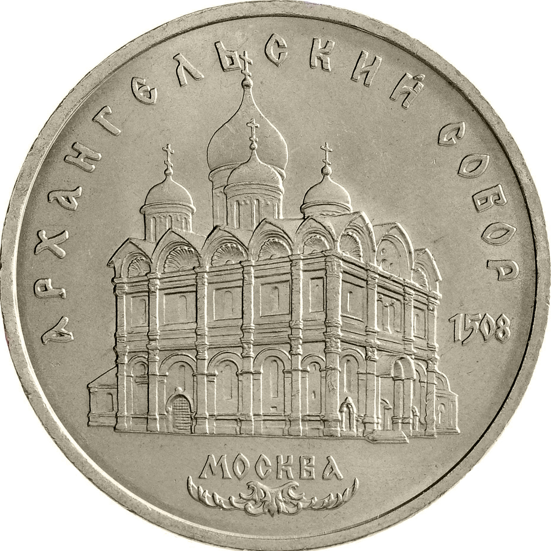 Монета 5 рублей "Архангельский Собор, г. Москва". СССР. 1991 год.