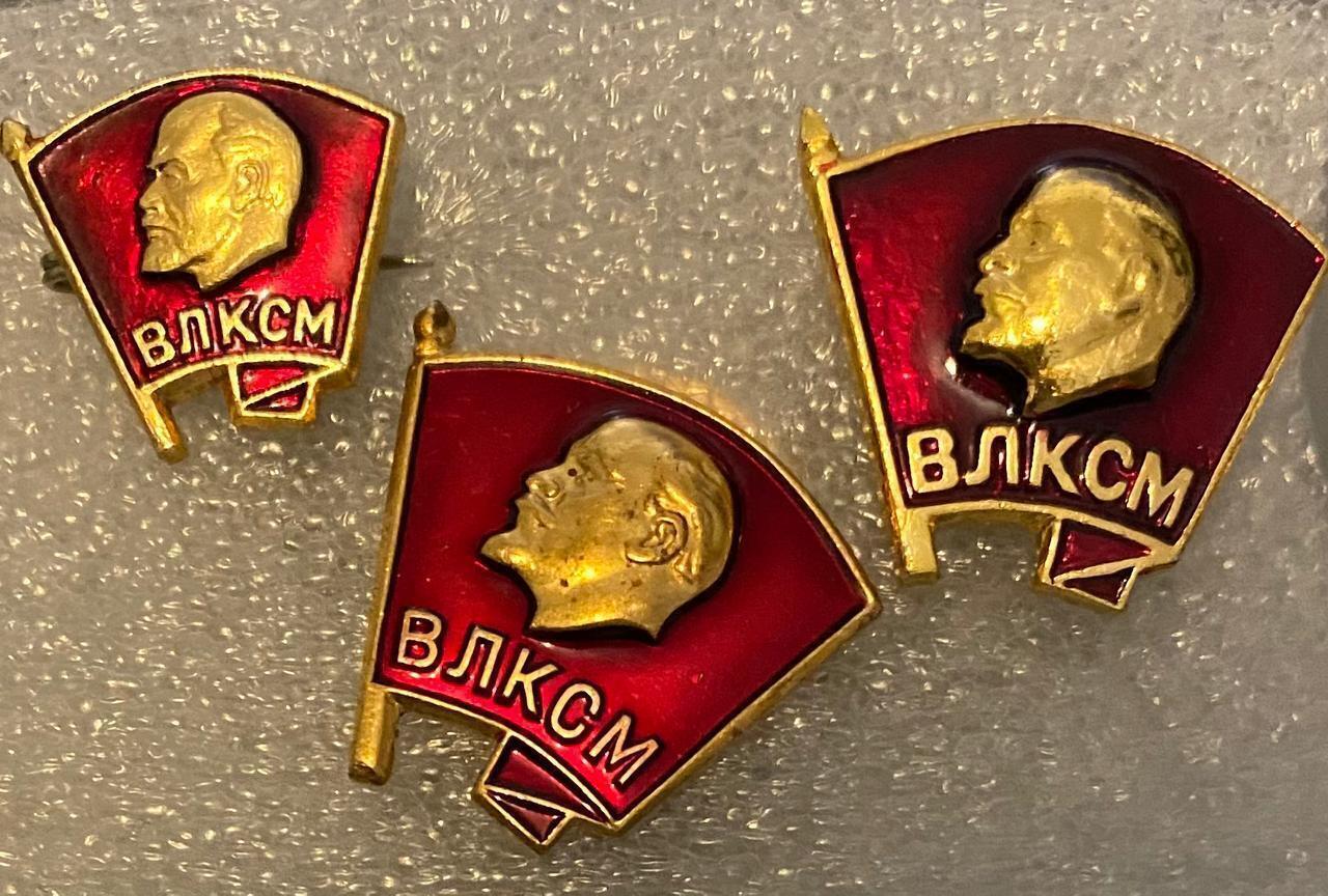 Набор из трёх Комсомольских значков (Винтовой, Малый, Стандартный-булавка). СССР.