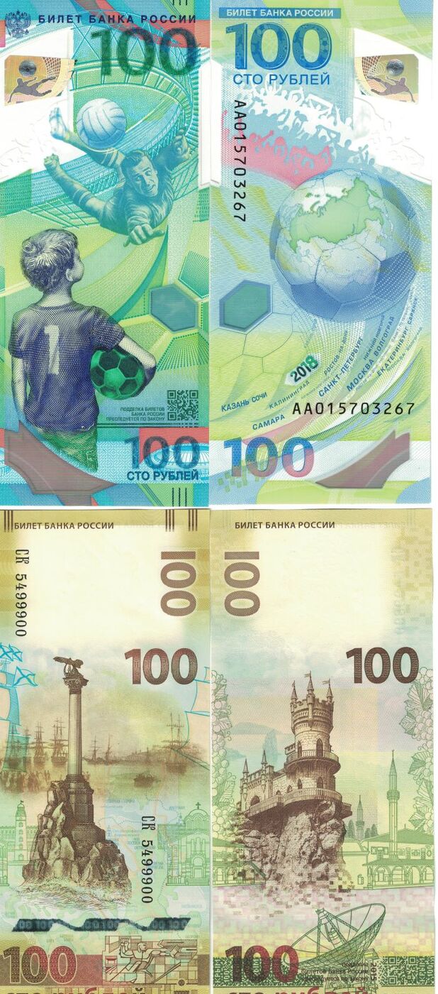 Набор банкнот 100 рублей "Чемпионат мира по футболу 2018" и "Крым".