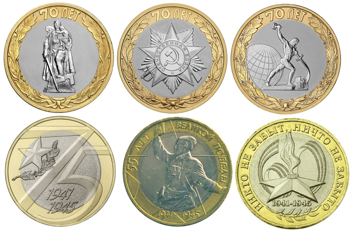 Полный набор биметаллическим монет посвященных Дню Победы (6 штук). Россия. 2000-2020 года.