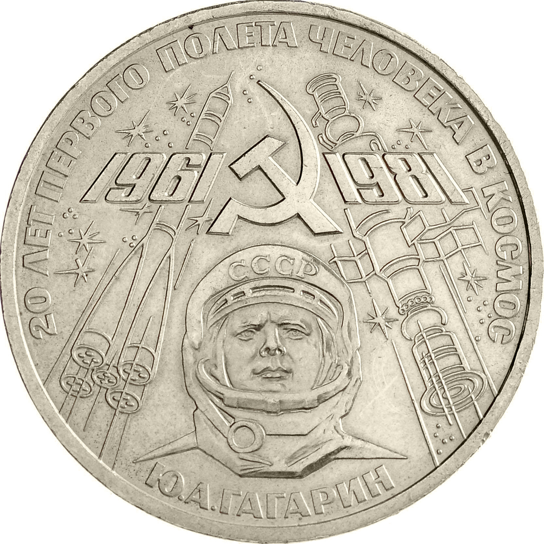 Монета 1 рубль "20 лет первого полета человека в космос, Юрий Гагарин". СССР. 1981 год.