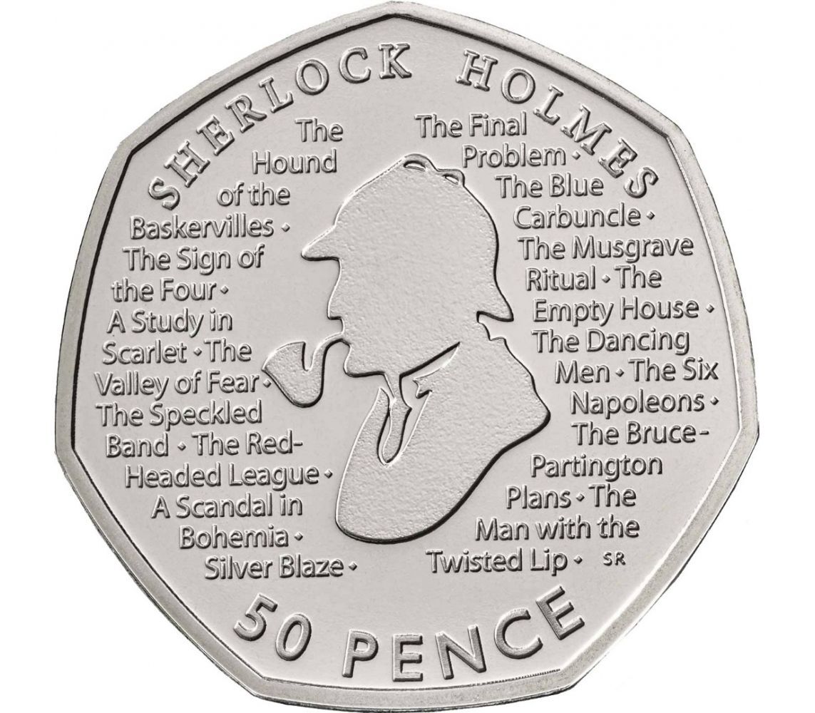 Монета номиналом 50 пенсов "Шерлок Холмс". Великобритания. 2019 год.