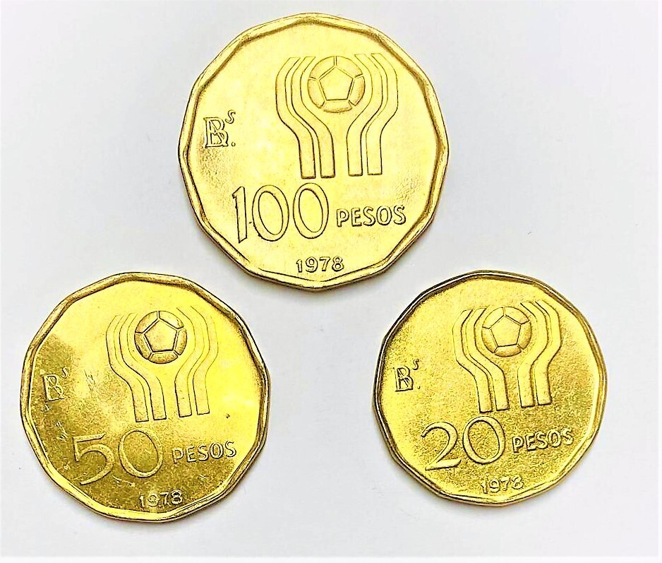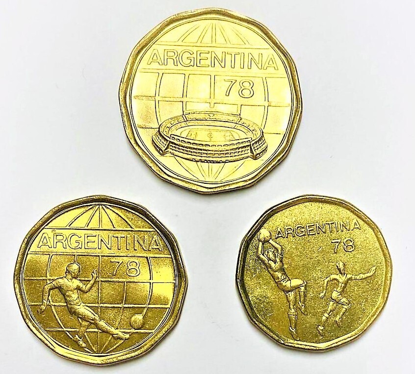 Набор монет "Чемпионат мира по футболу 1978" (3 штуки). Аргентина. 1978 год.