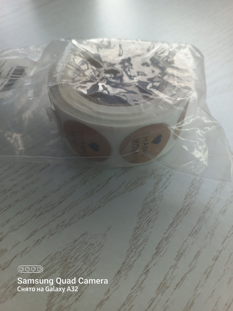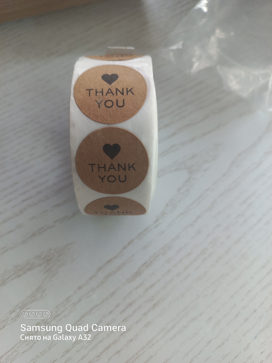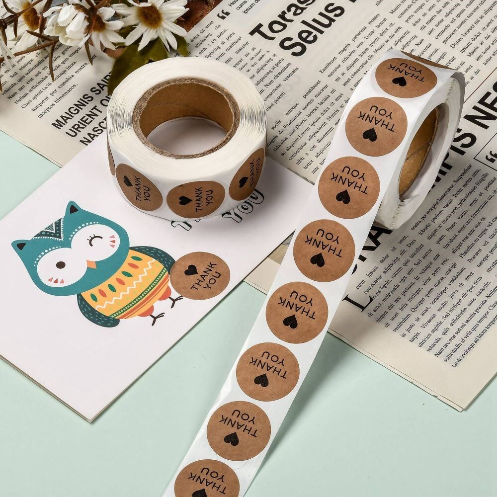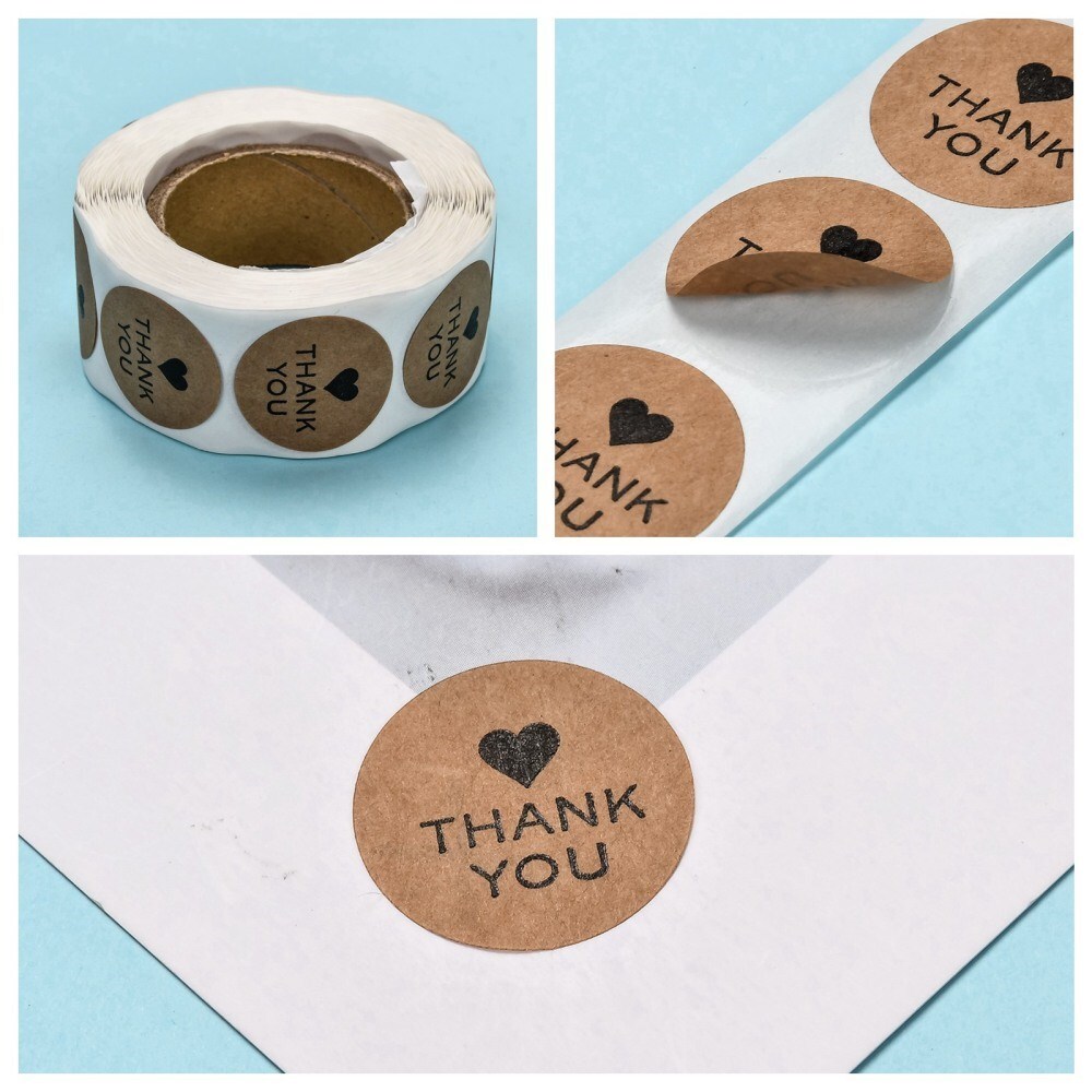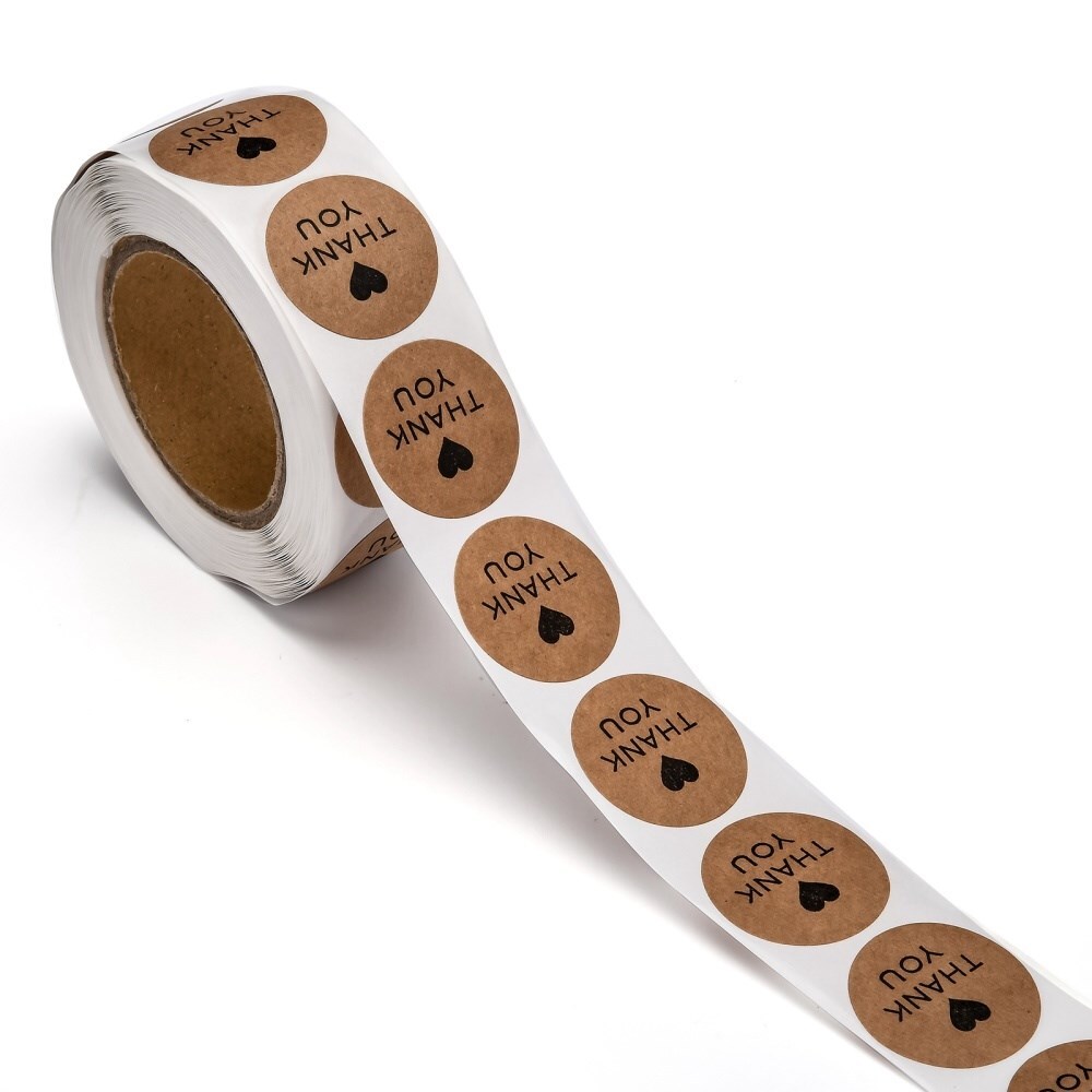 Наклейки Стикеры "Thank you" Крафт-Бумага 25мм Цвет: Древесный 500шт/рулон (13Z26462)