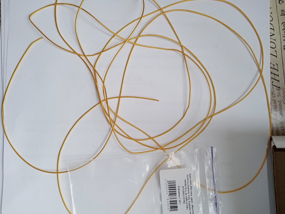 Шнур Вощеный Хлопковый, Желтый, 1мм, 10 метров
