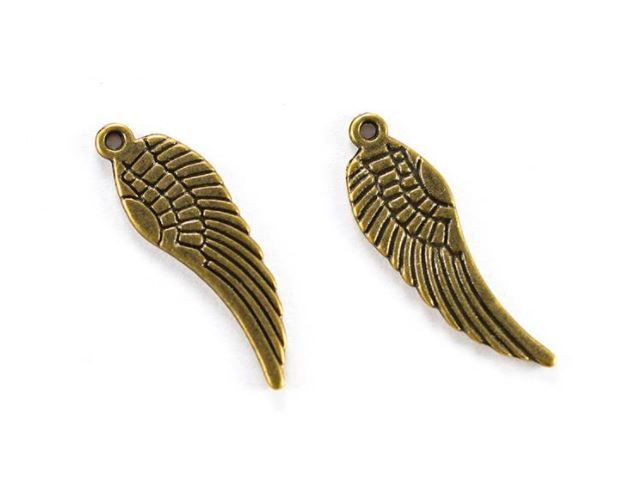 Кулон Крыло. 4 шт. Цвет: Бронза. Металл. 30х9х1.5мм Отверстие 1.5мм