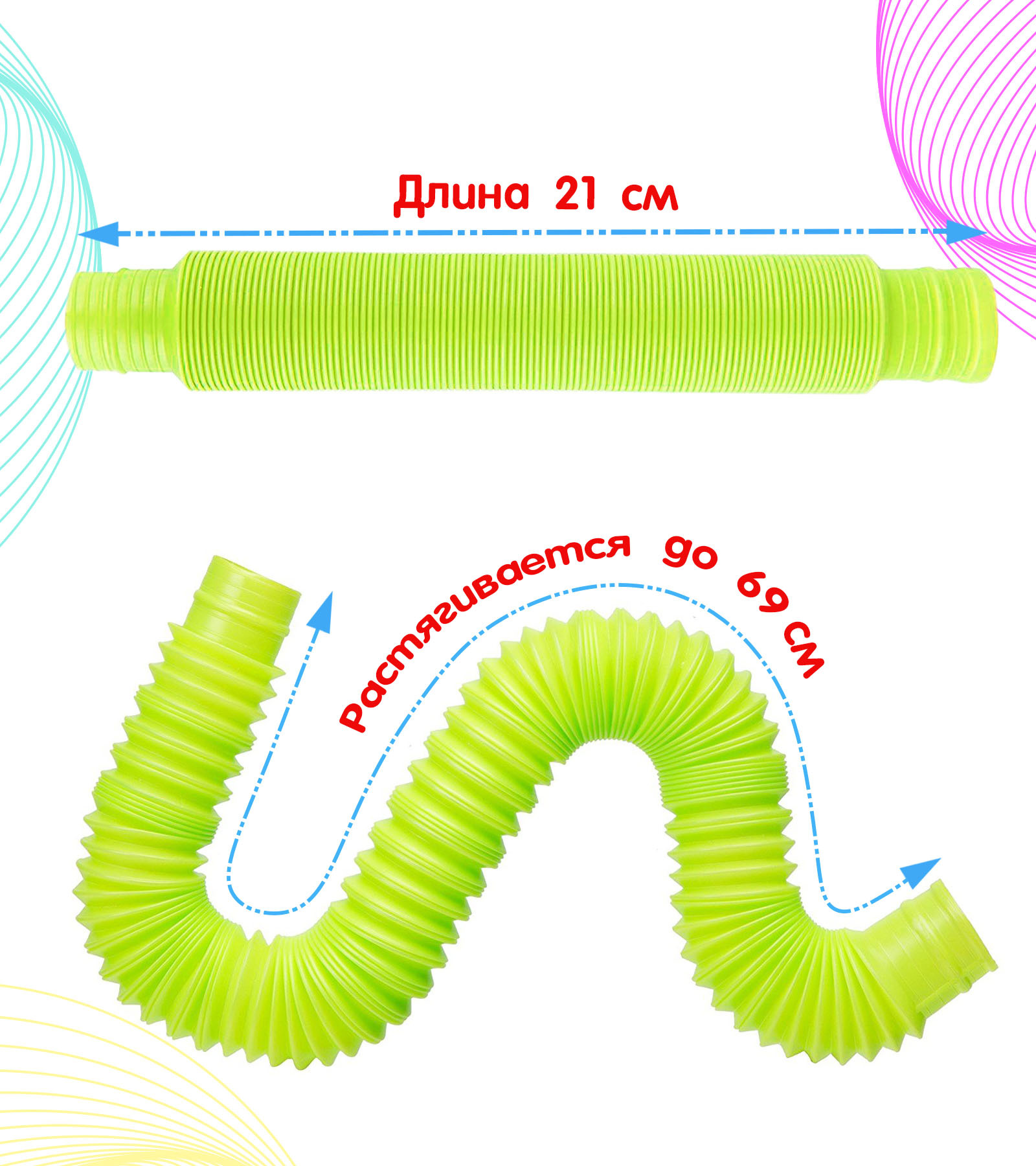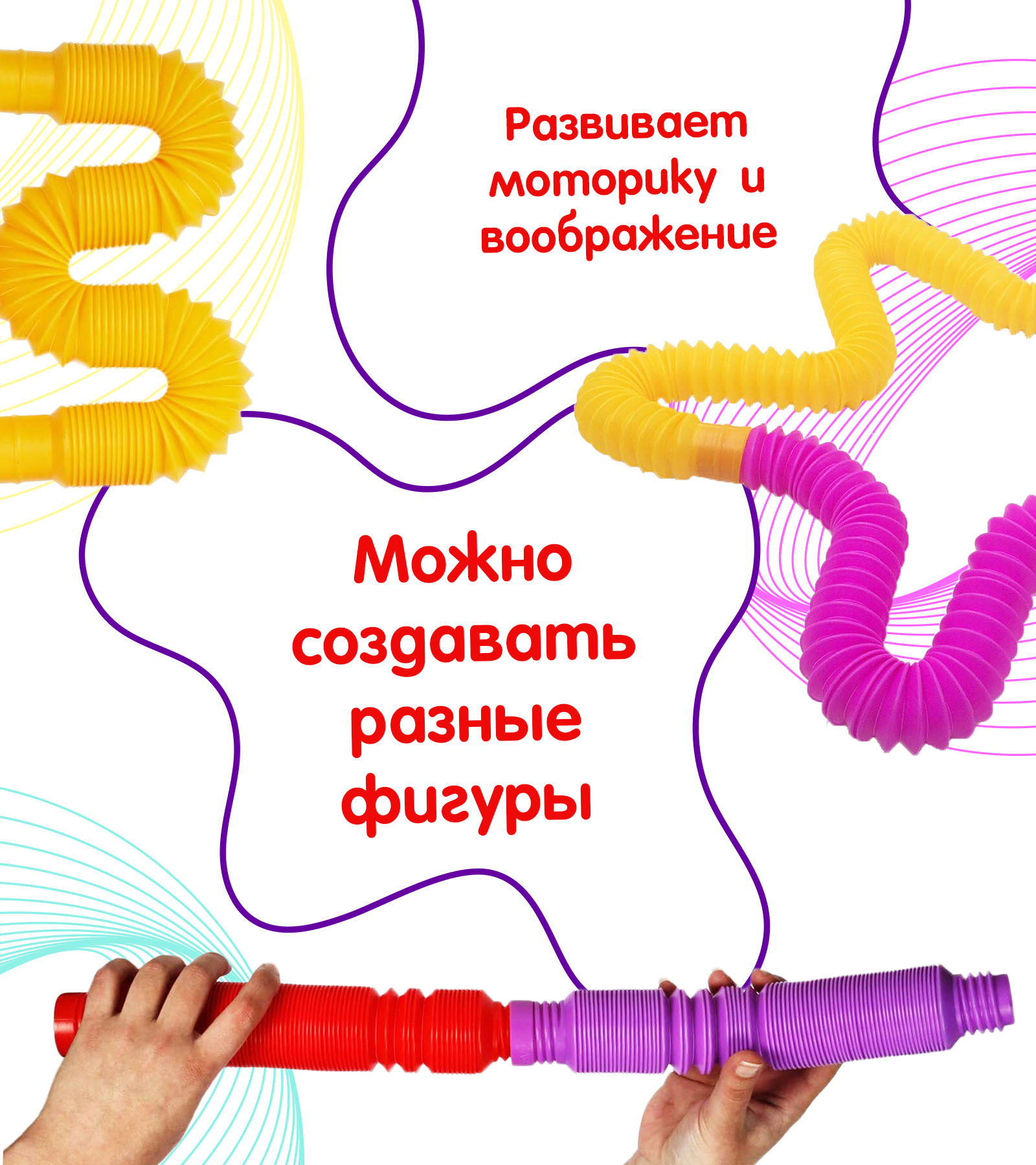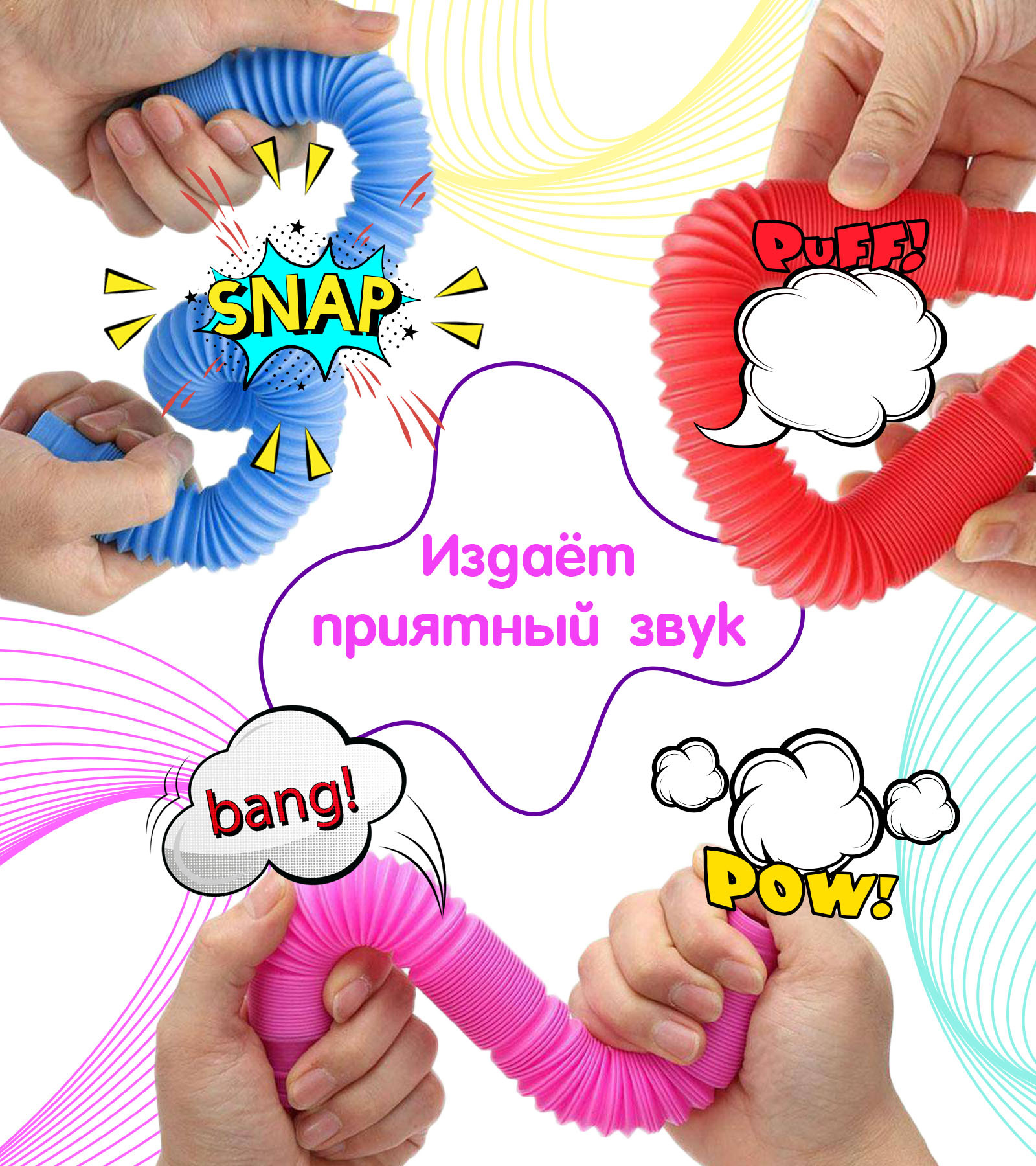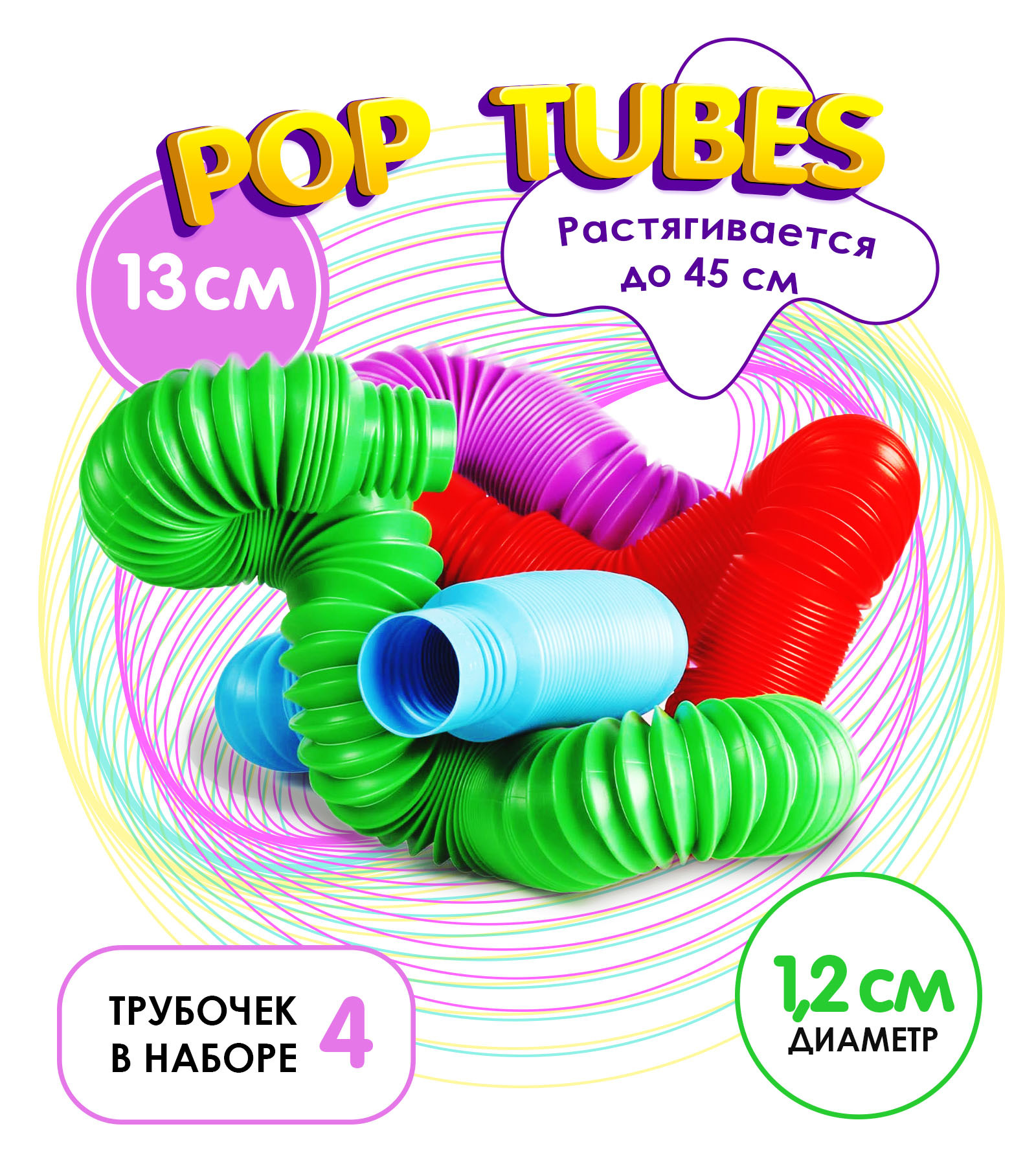 Pop Tubes / Игрушка антистресс/ Развивающая игрушка / Труба гармошка / Гофра / Трубка, 4 шт, цвет случайный