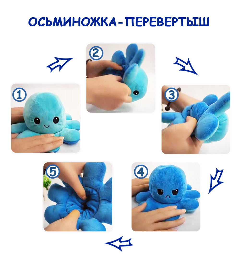 Мягкая игрушка/ Игрушка антистресс/ Осьминожка вывернушка/ Игрушка двусторонняя/ Осьминог перевертыш, цвет случайный