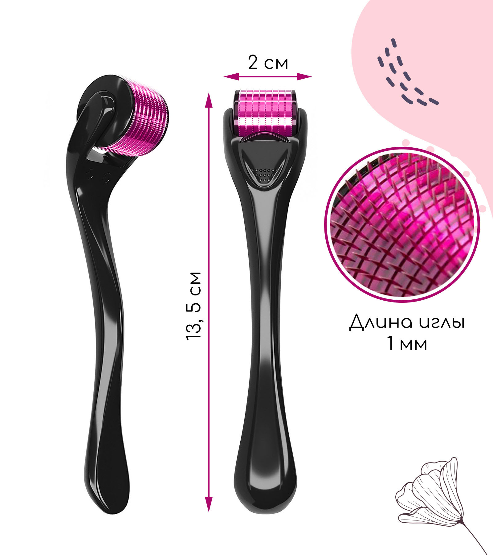 MooMoo / Мезороллер для лица 540 титановых игл, 1 мм (дермароллер)