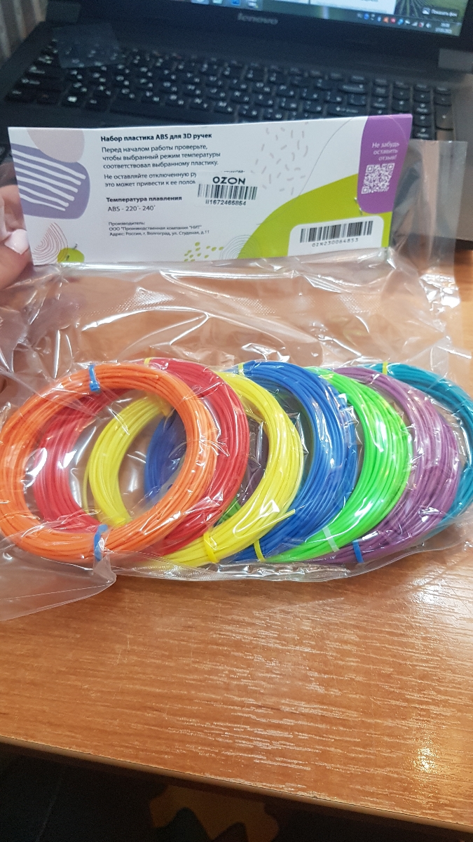 Набор ЯРКОГО и красочного ABS пластика для 3D ручки 7 цветов по 10 метров / Набор БЕЗОПАСНОГО и ПРОЧНОГО 3д пластика для детей