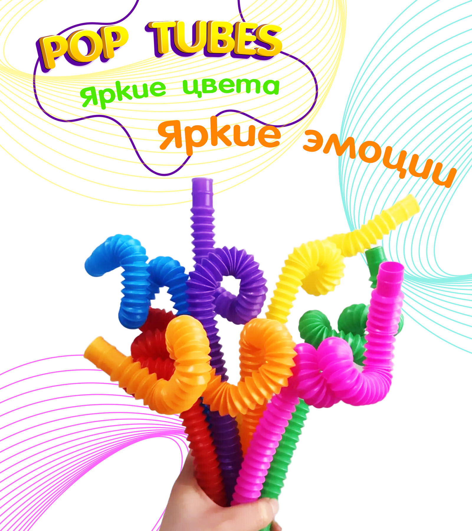 Pop Tubes / Игрушка трубки антистресс / Развивающая игрушка / Труба гармошка / Гофра / Трубка, 13 см 6 шт, цвет случайный