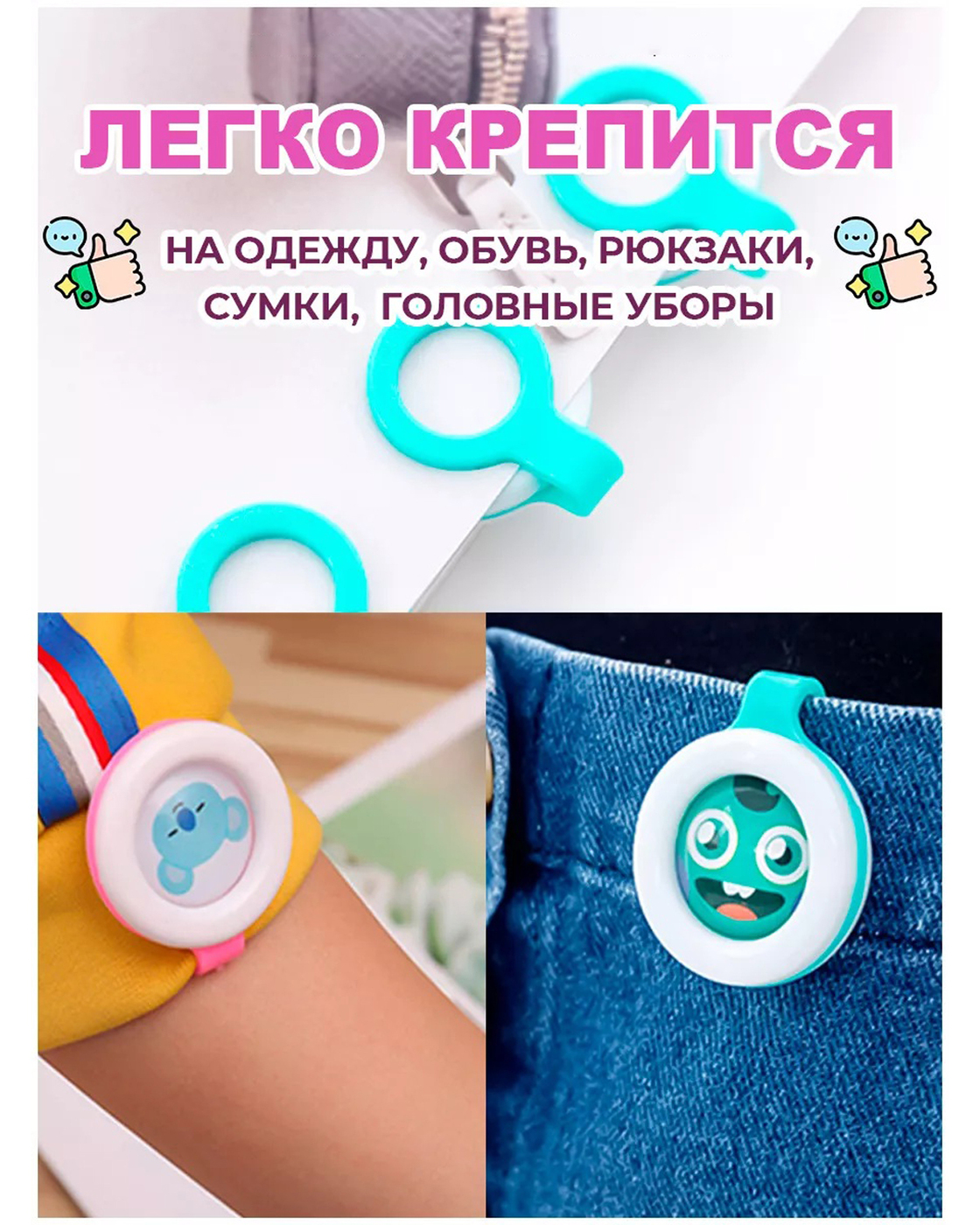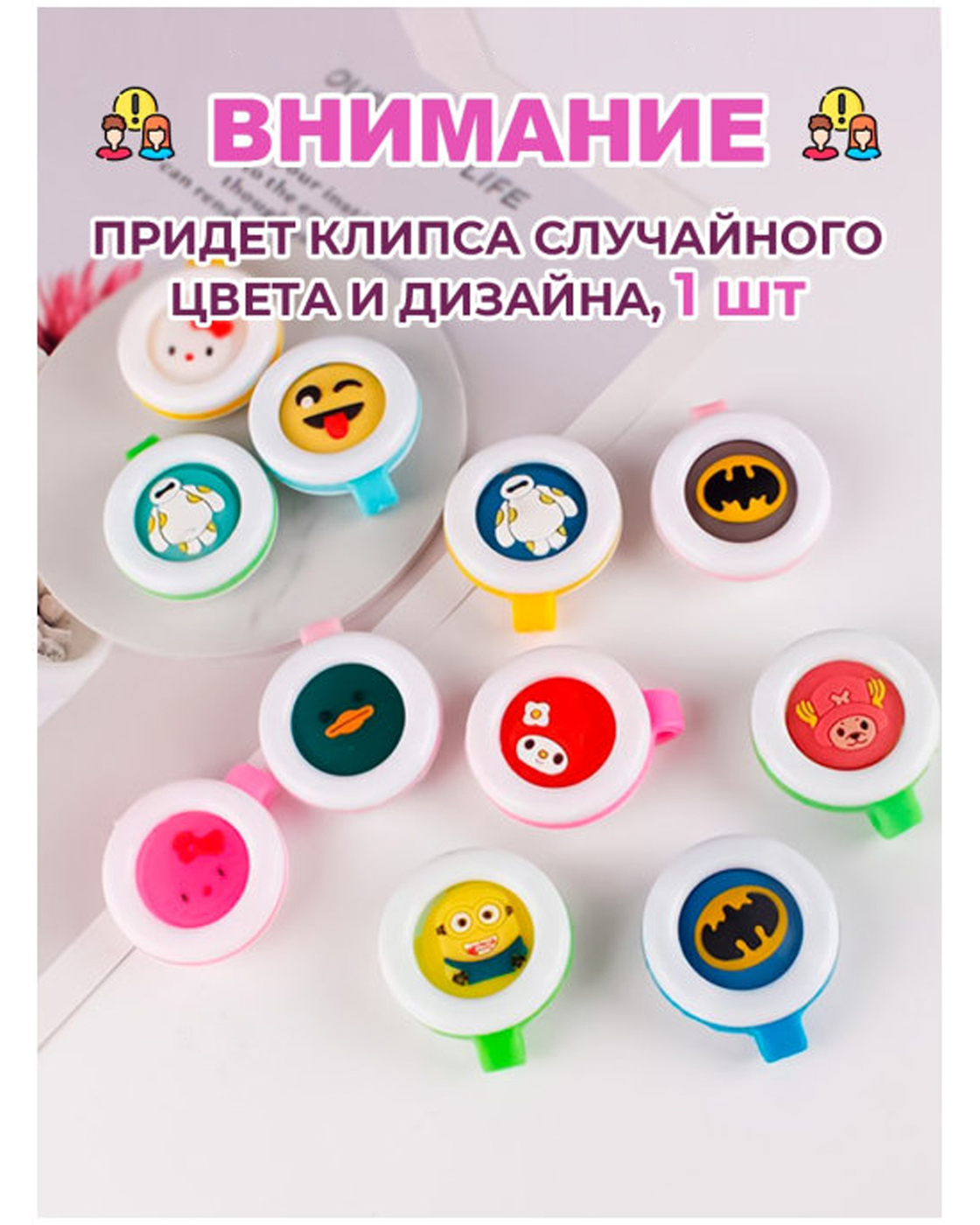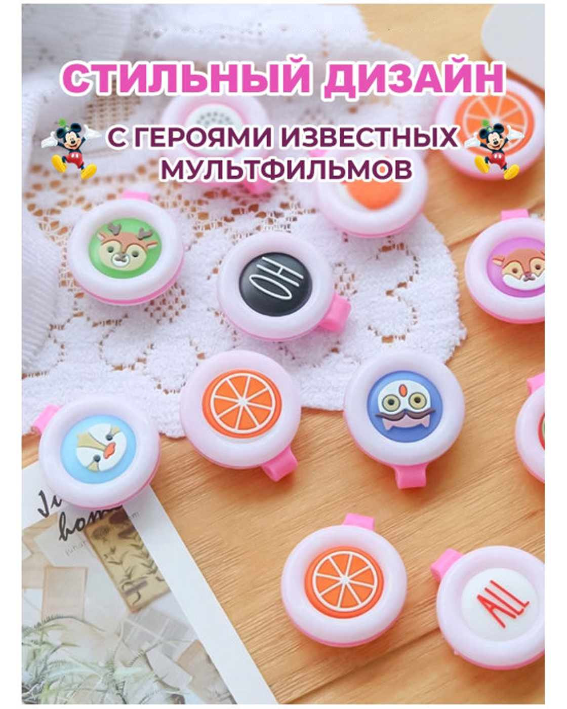 Клипса (репеллент) отпугиватель 3 шт., защита от комаров для детей и взрослых на одежду, с яркими героями мультфильмов