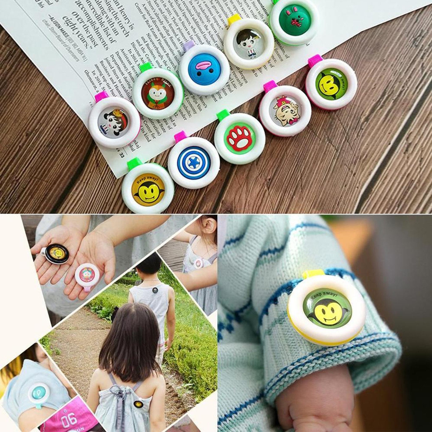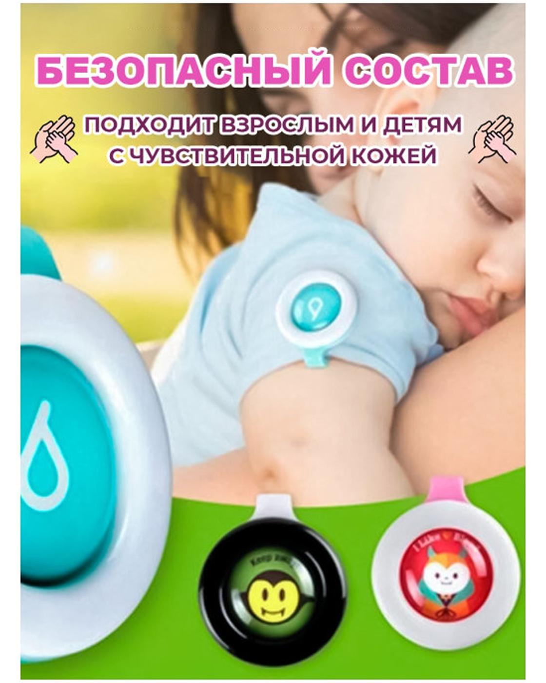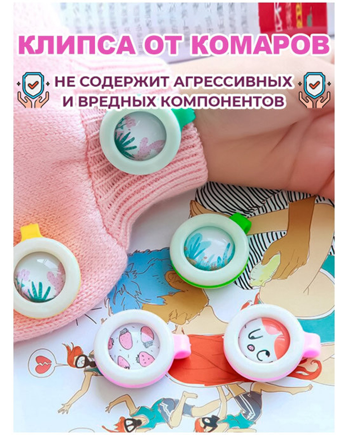 Клипса (репеллент) отпугиватель 3 шт., защита от комаров для детей и взрослых на одежду, с яркими героями мультфильмов