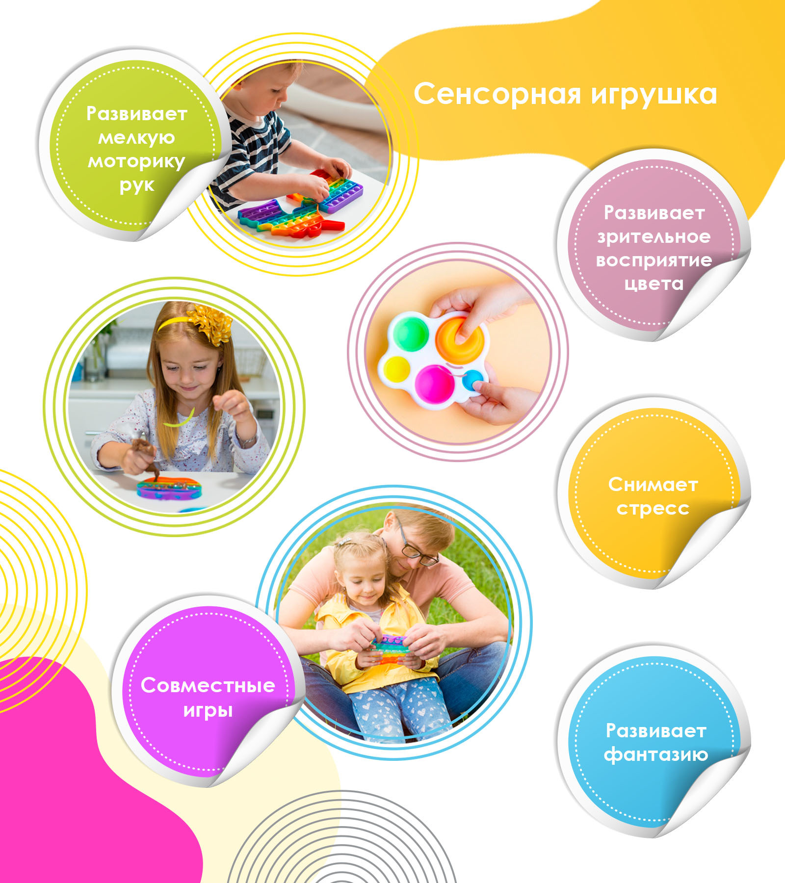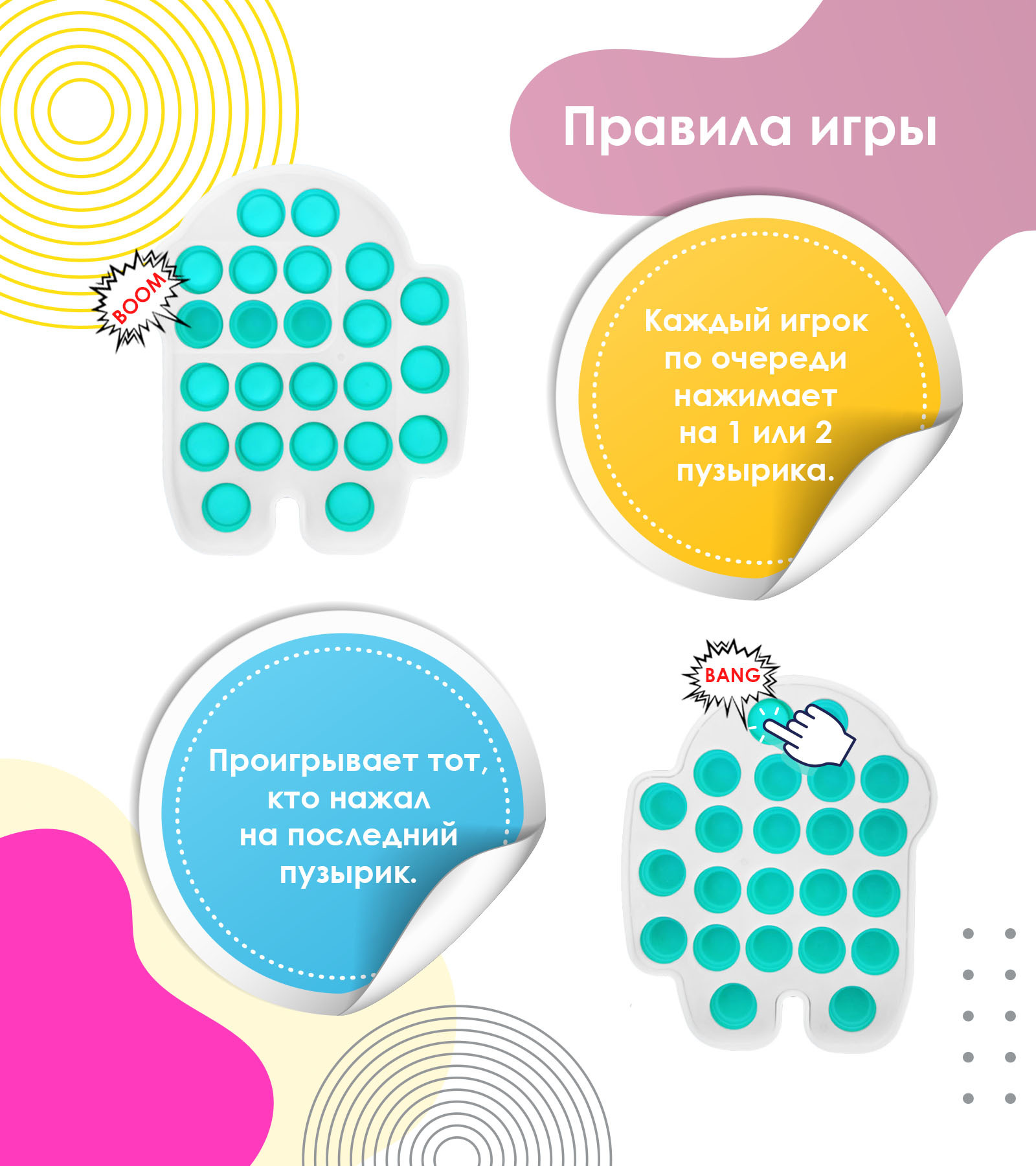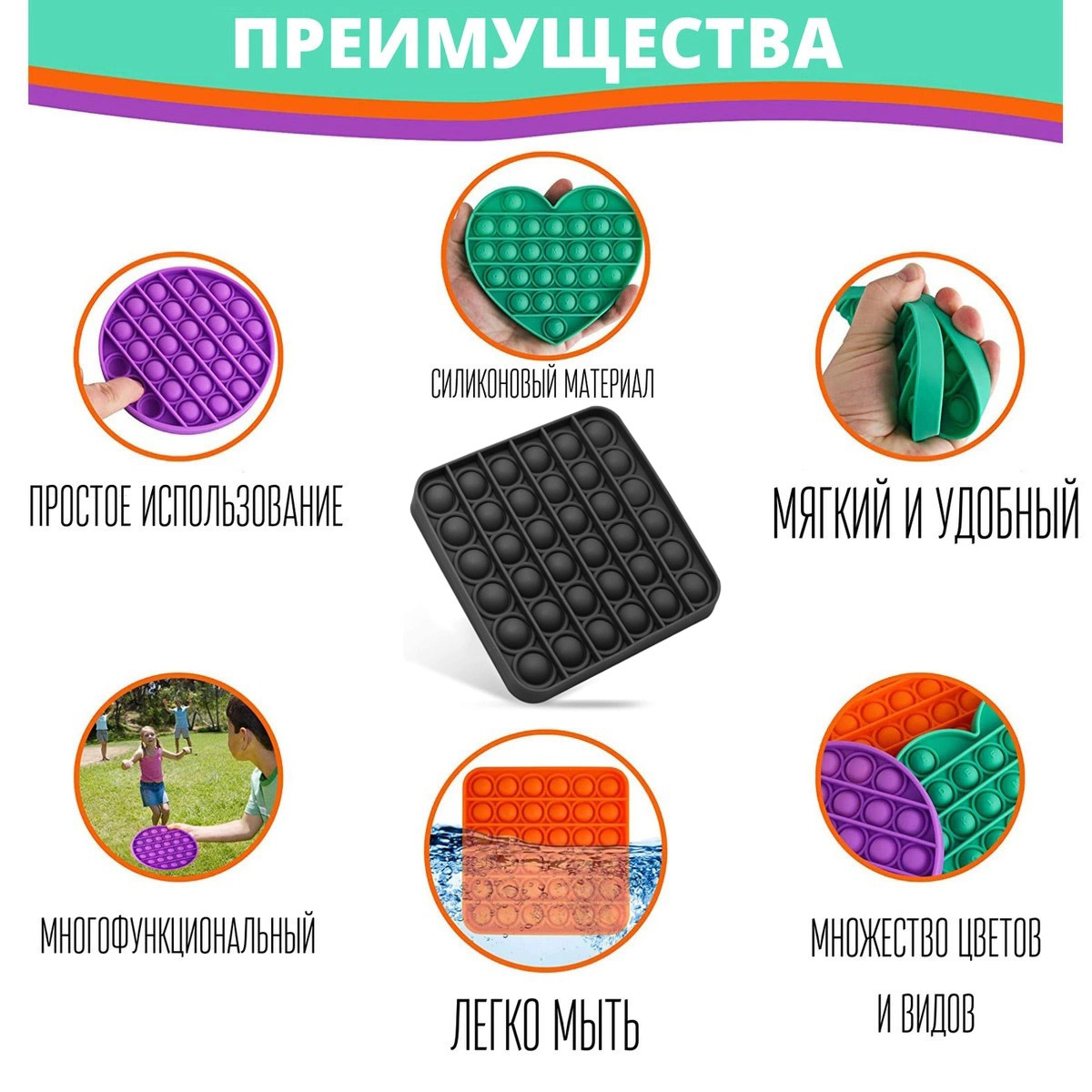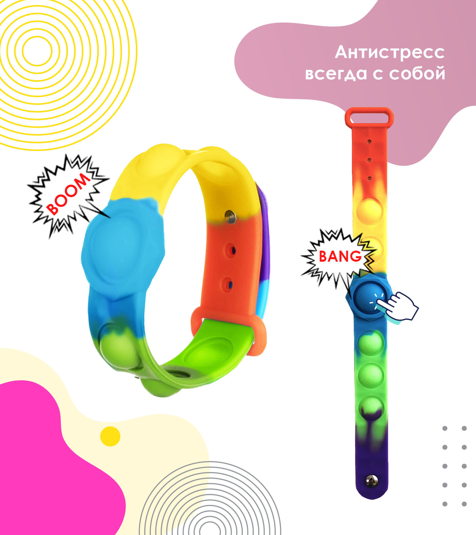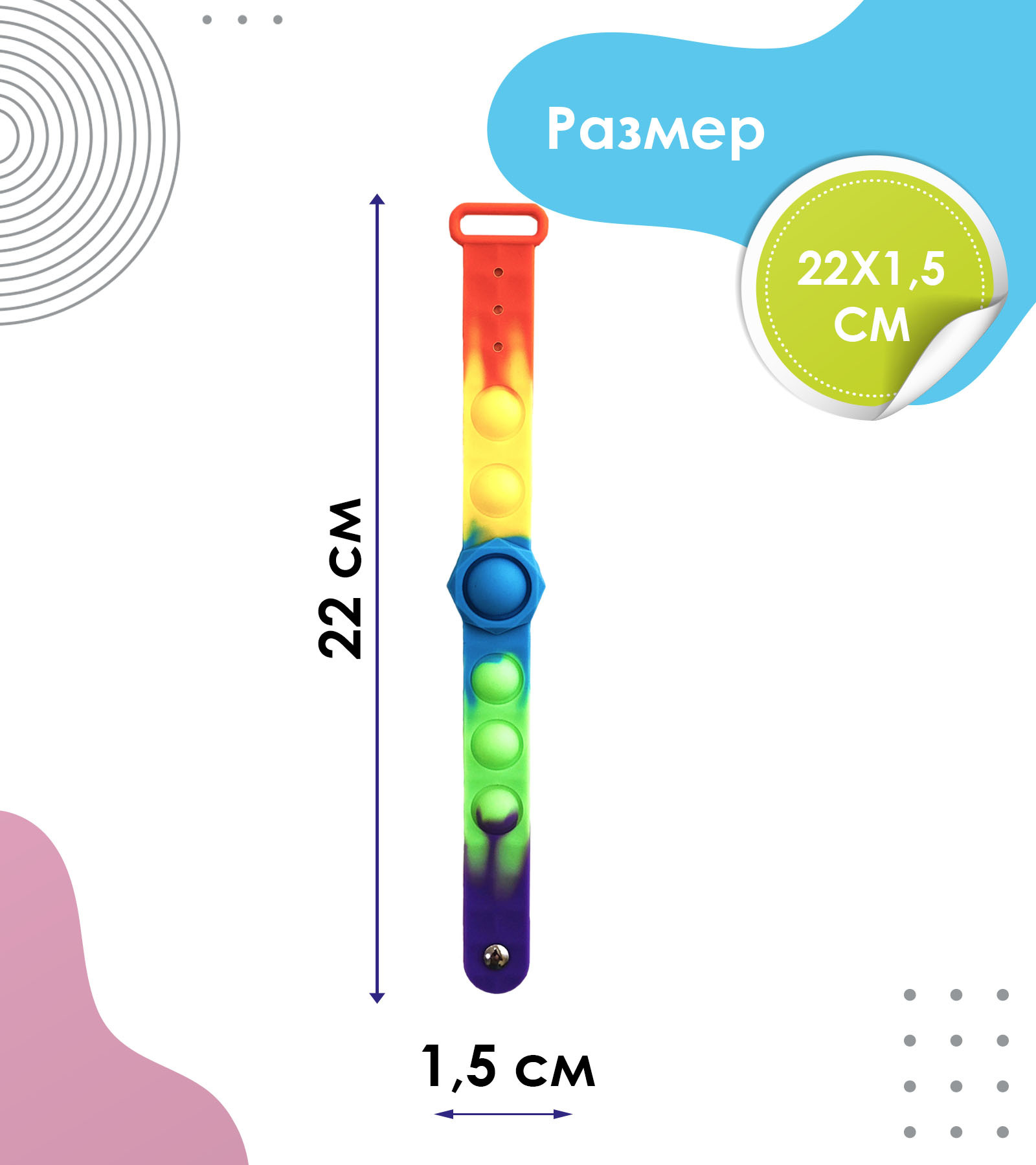 Антистресс Браслет / Вечная Пупырка для детей / Игрушка Pop it с пузырьками / Тактильная сенсорная игрушка/радужный