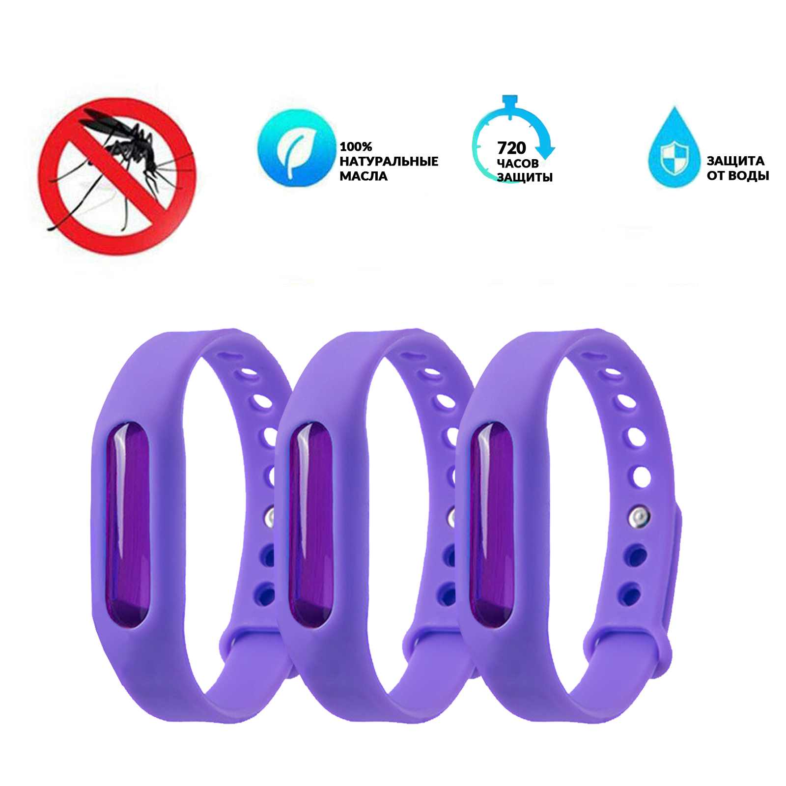 Браслет от комаров (антимоскитный), случайного цвета, 3 шт