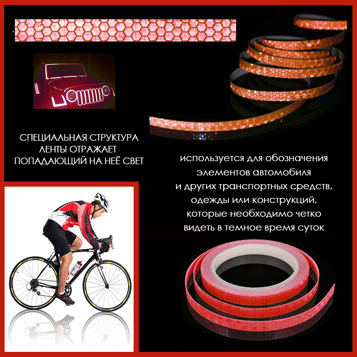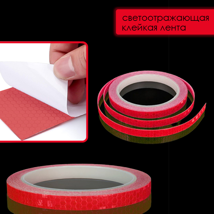 Клейкая лента светоотражающая, красная, 8 м,15х1 см