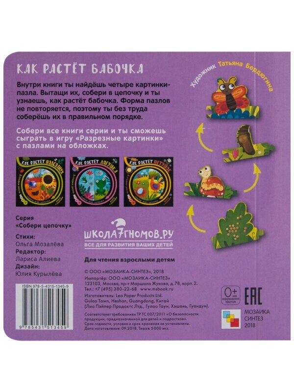 Книжка Мозаика-Синтез Собери цепочку Как растет бабочка