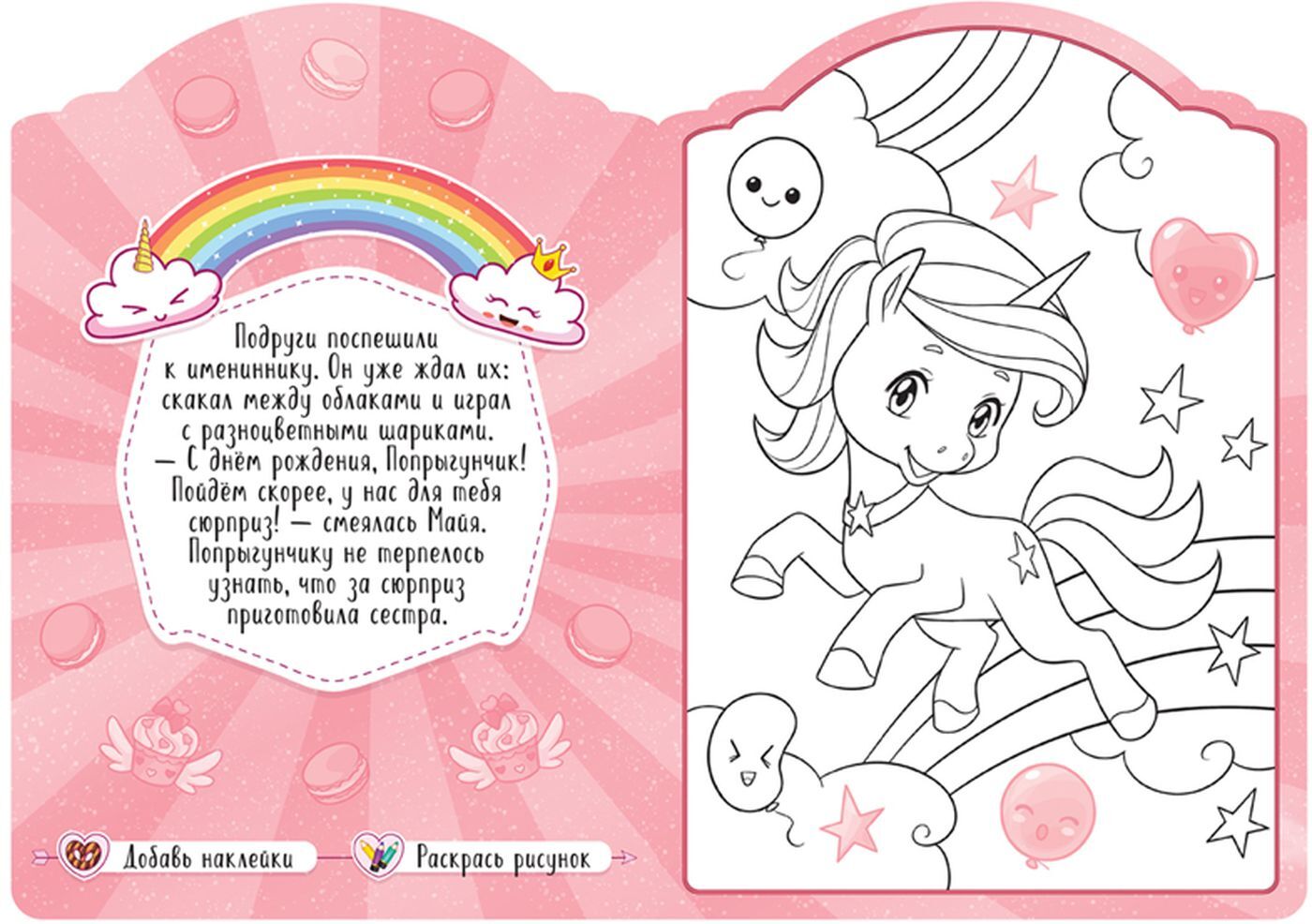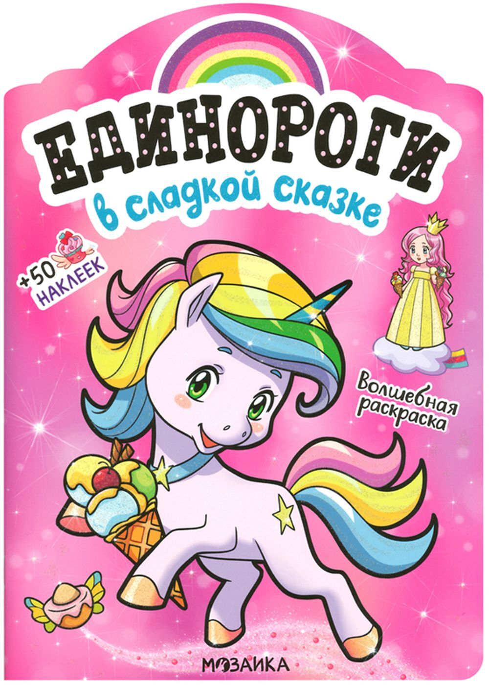 Раскраска А4, Мозаика-Синтез "Единороги с наклейками В сладкой сказке", 16стр, 50 наклеек