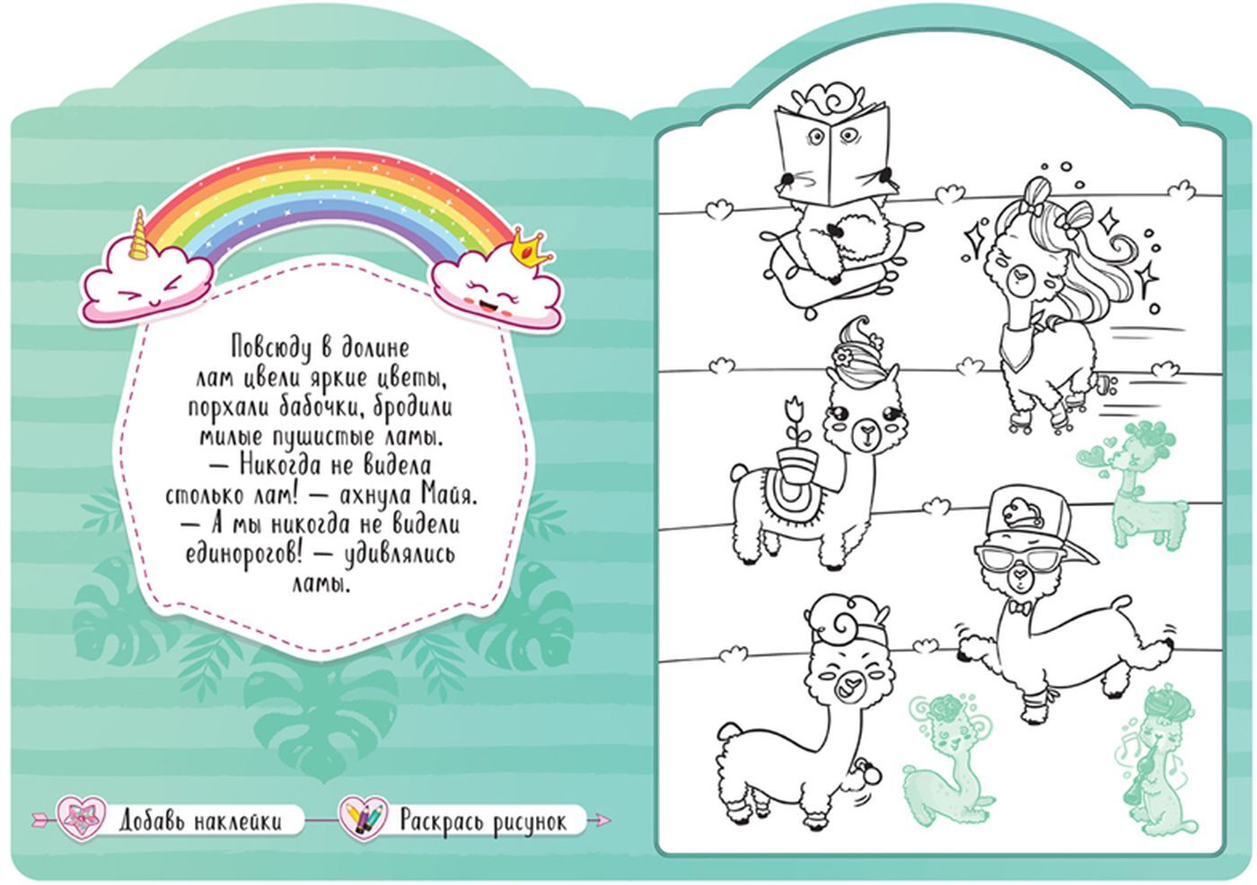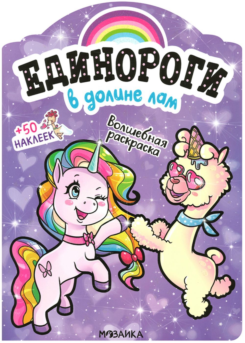 Раскраска А4, Мозаика-Синтез "Единороги с наклейками В долине лам", 16стр, 50 наклеек