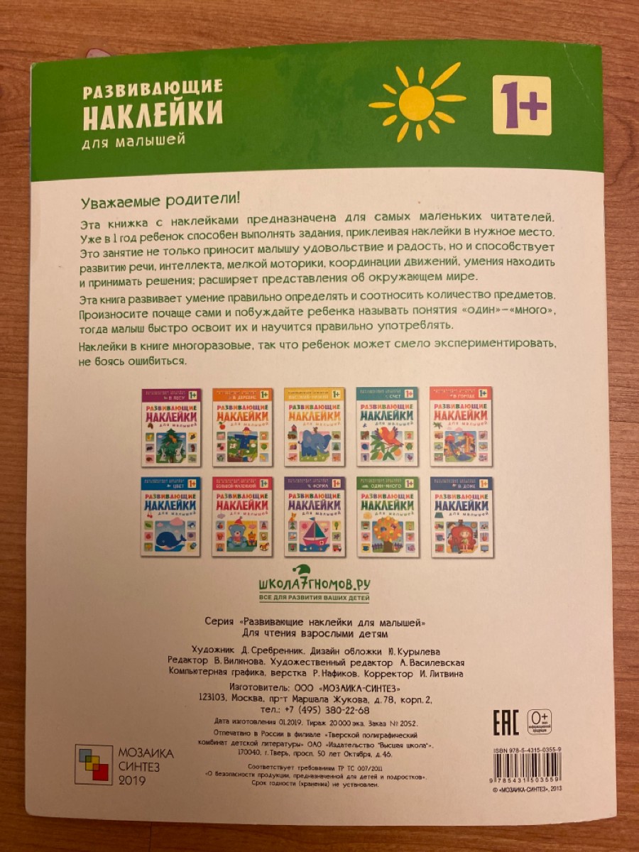 Развивающая книжка Наклейки для малышей Мозаика-Синтез "Форма", многоразовые развивающие наклейки