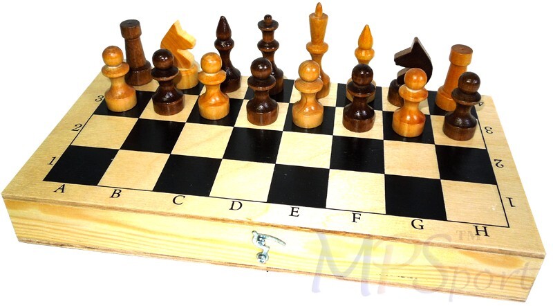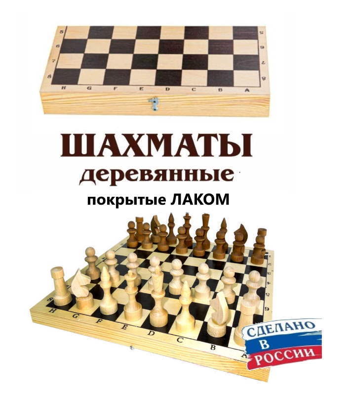 Шахматы деревянные обиходные (лак) с доской 02-18